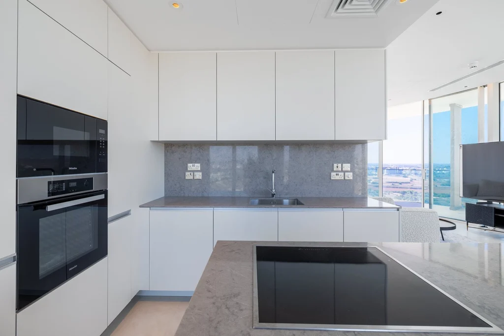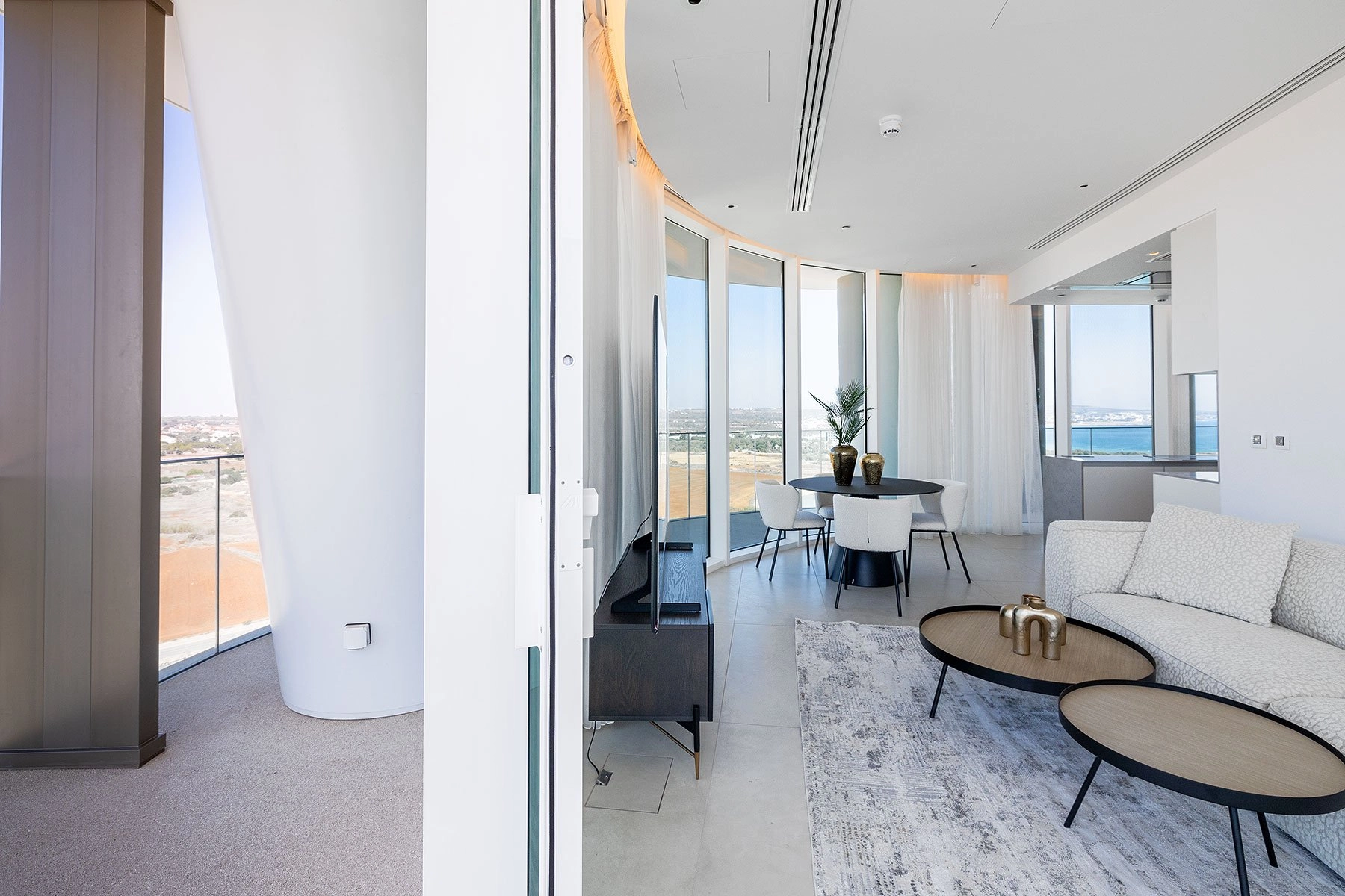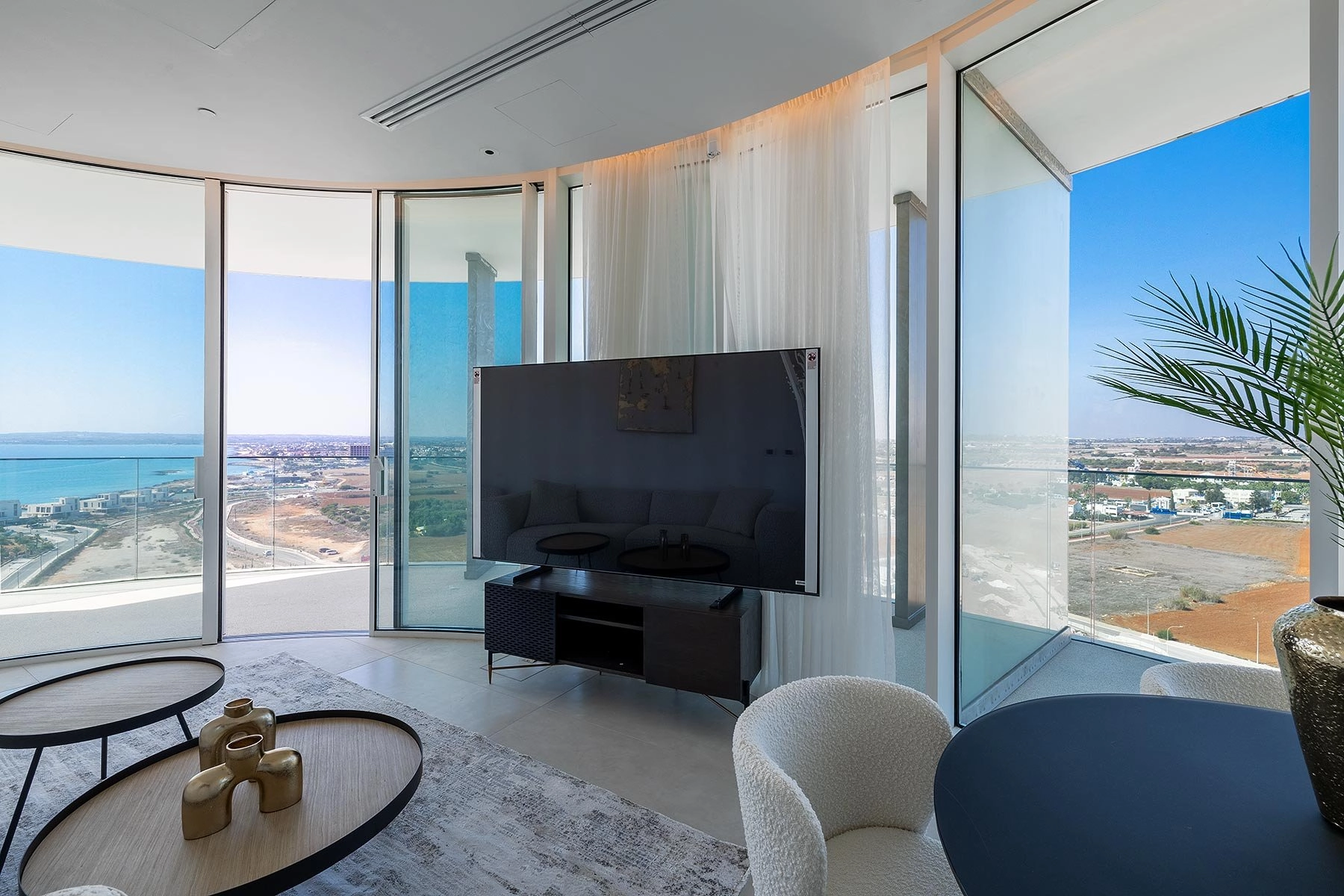 Each apartment has a unique layout, strategically designed to ensure that all living spaces, including bedrooms, face the captivating waterfront and pristine beaches. Modern open-plan designs dominate, maximizing both daylight and breathtaking views. The living rooms feature full-height glass doors that seamlessly open, extending the living area onto the covered veranda.