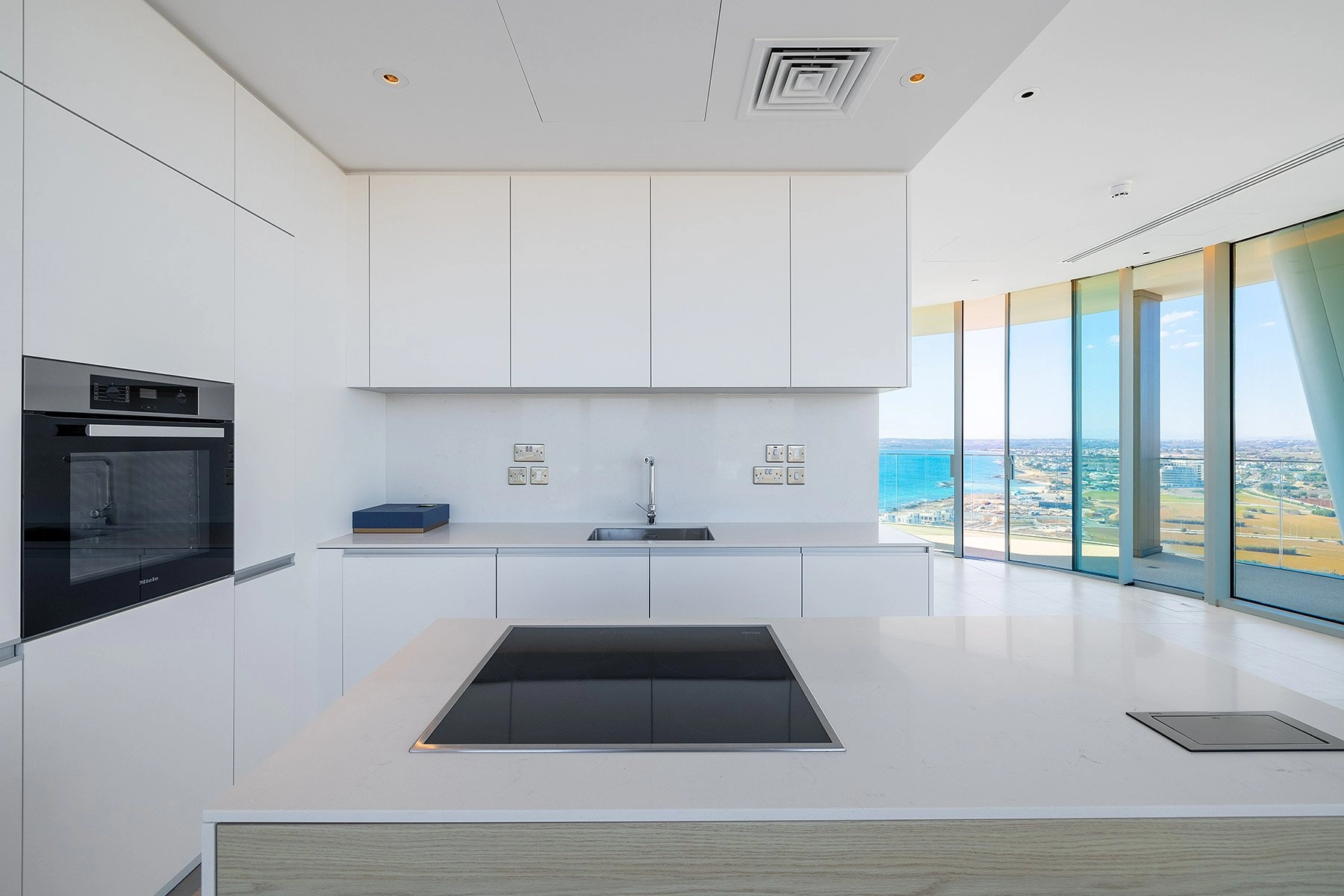 Each apartment has a unique layout, strategically designed to ensure that all living spaces, including bedrooms, face the captivating waterfront and pristine beaches. Modern open-plan designs dominate, maximizing both daylight and breathtaking views. The living rooms feature full-height glass doors that seamlessly open, extending the living area onto the covered veranda.