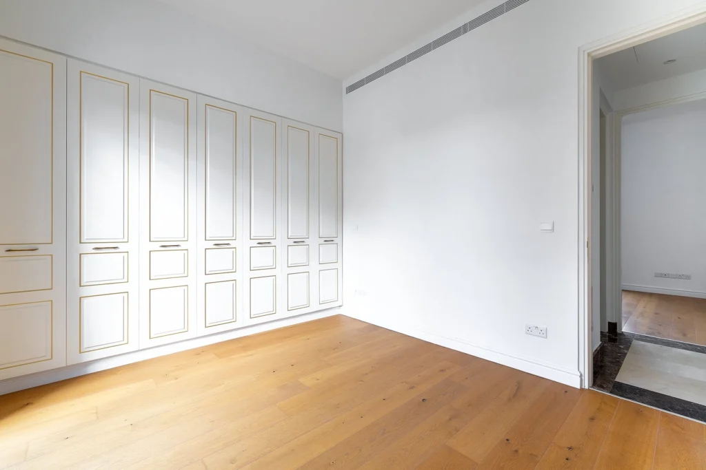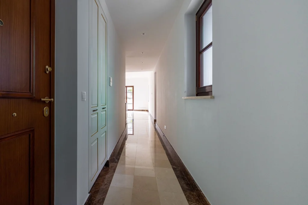 The interiors boast a ceiling height of 3.10m, high-quality wood interior doors, and flooring crafted from premium materials like marble, granite, and parquet. Adaptable hardwood windows ensure harmony with the classic exteriors. The underfloor heating, utilizing cutting-edge technology, adds to the overall comfort.
