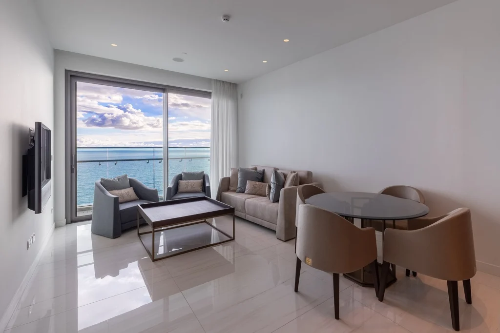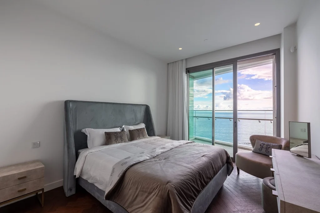 This two bedroom and two bathroom luxury apartment is part of a world-class seafront development in the ultra-desirable coastal area in Limassol with unobstructed sea views across the Limassol coastline and beyond. This landmark development consists of luxury residences that will enjoy in-house services, concierge services, exceptional facilities, and an exclusive high-end shopping and dining plaza. The tower expresses the island’s ‘new wave’ of architecture through its unique high-rise curvilinear design that fully capitalizes on the plot’s 170 meters long sea frontage. Top-of-the-range finishes, smart building technologies, and services that one finds in luxury 5-star hotels, including owners club, concierge, extensive spa areas, indoor and outdoor pools, gyms, a tennis court, underground parking, and discreetly monitored gated access, will ensure the comfort of the development. The world-class services are as unobtrusive as possible, while remaining fully accessible.
