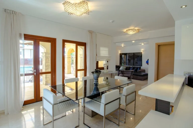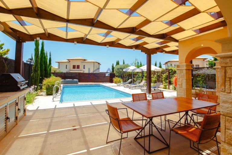 This exquisite 3-bedroom villa in the prestigious Aphrodite Hills golf resort is nestled on a south-facing site, boasting breathtaking sea views. It is a mere stroll away from the Village Square’s shops, restaurants, and the resort’s sports and leisure amenities. Fully furnished and equipped, this residence exudes sophistication.