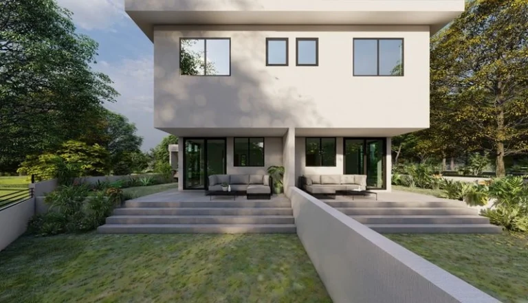 The development consists of three 3-bedroom, 2-bathroom villas, each set on its own plot with a private parking space. These exquisite two-storey villas showcase contemporary design, a well-thought-out layout, and sophisticated finishes using top-quality materials. The ground floor features a spacious living room, an elegant dining area, a modern kitchen, and a guest toilet. On the first floor, you’ll discover three cozy bedrooms and a family bathroom, with the master bedroom boasting an en-suite shower. Step onto the inviting veranda with a comfortable lounge area, offering a perfect spot to relax and unwind in the fresh air. Adjacent is the barbecue area, creating an ideal setting for gatherings with family or friends.