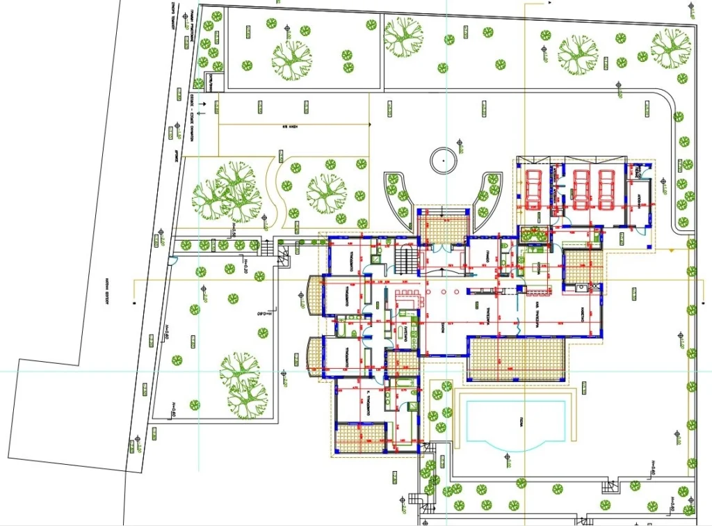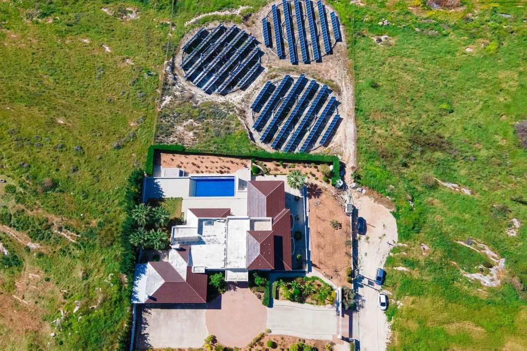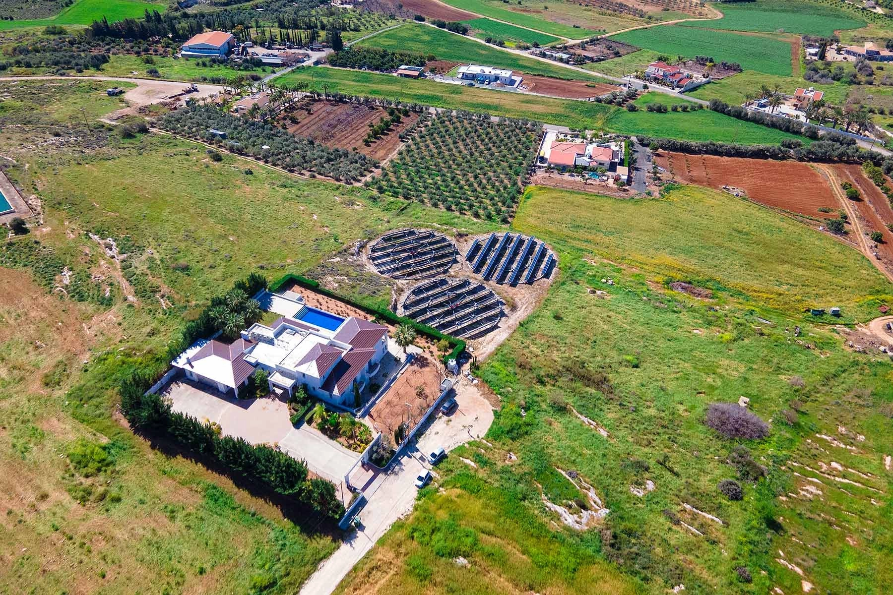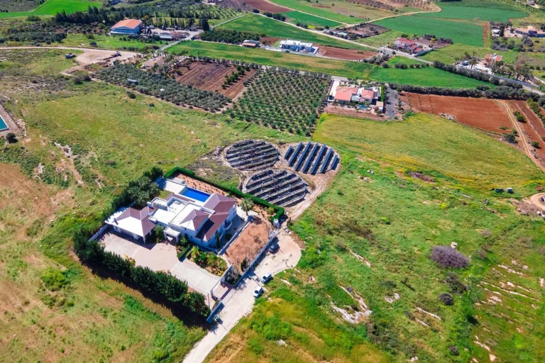 This impressive 8-bedroom, 8-bathroom residence spanning 675 sq. m. of living space, is set on a 7100 sq. m. plot. The home, nestled within a sprawling estate in Anarita village, close to Pafos, offers both expansive living areas and cozy retreats for relaxation and entertainment.