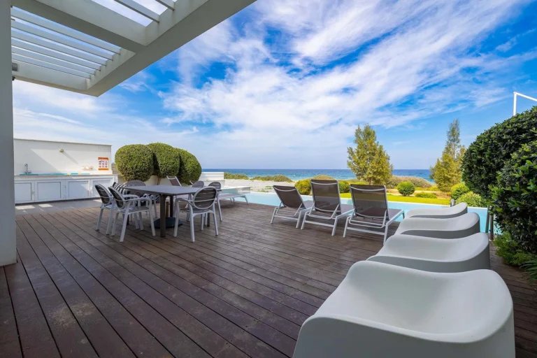 Nestled in the serene area of Ayia Triada in Protaras, this elegant seafront villa offers a true oasis of tranquility and privacy. Providing an escape from the hustle and bustle of daily life, it serves as a peaceful haven while still being conveniently close to all necessary amenities. Situated on a spacious plot, this two-story residence boasts generous covered areas with uninterrupted views of the sea and a private swimming pool.