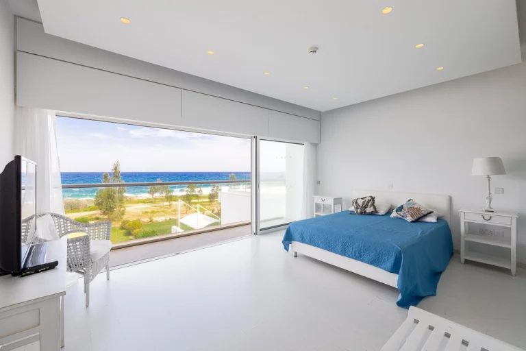 Reference ID: #SA31729Price details: €1,950,000 +VATLocated in a peaceful private community on the seashore west of Ayia Napa, this beautiful frontline villa has an expansive lush garden plot and sea views.Intelligently designed to mirror traditional architecture while bringing full modern amenities, the villa has large interior and exterior living areas, bright bedrooms with sea views, and a private pool in a garden and green area directly to the sea. The villa is sold fully furnished with appliances.Direcrt sea accessDouble-glazed windows GardenGated communityGranite worktopLower LevelLuxury fixture and fittingsPrivate balcony Private parkingProvision for air conditioningSea viewSeafrontWalking distance to sea