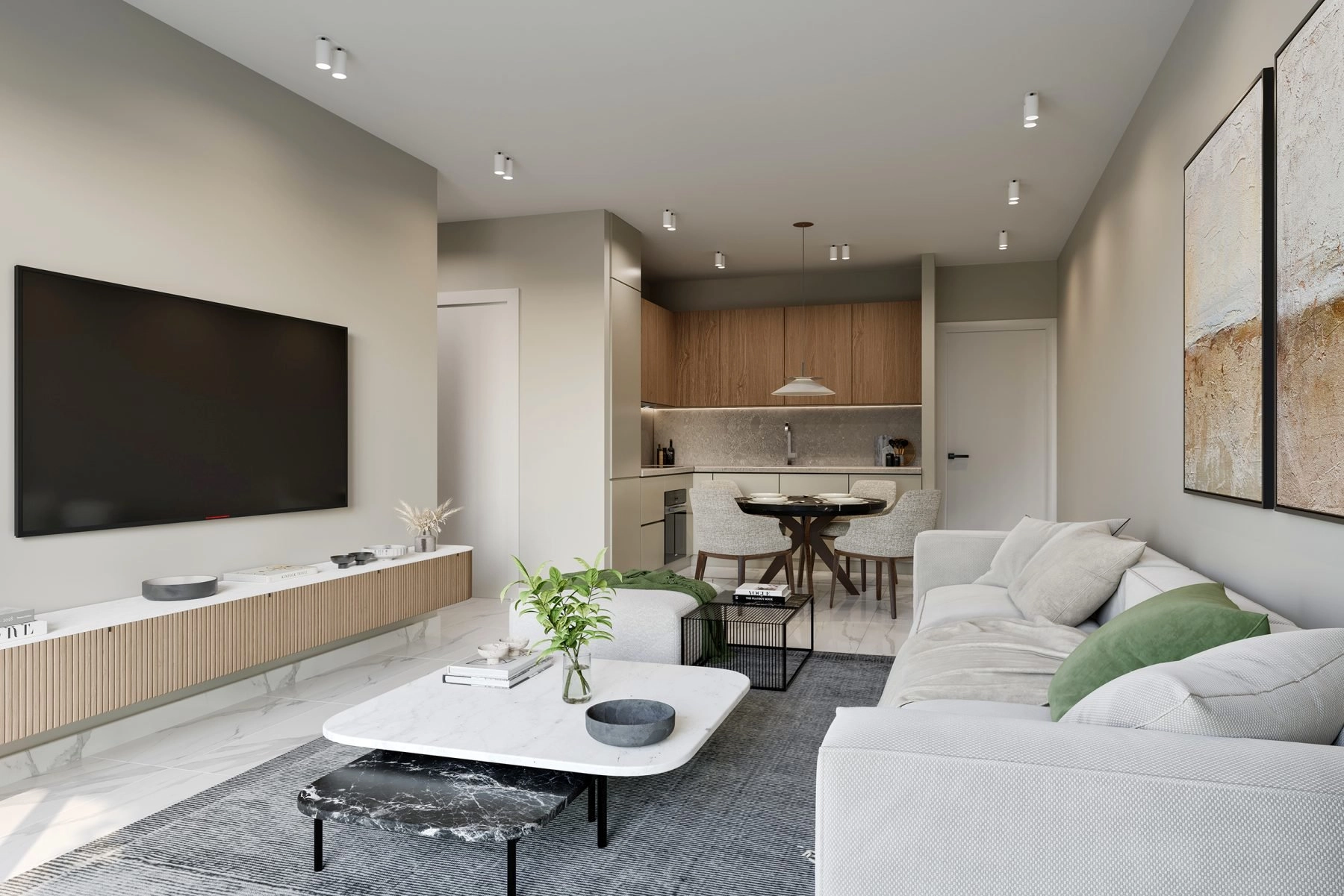 Comprising five stunning apartment buildings, this complex sets a new standard for modern living, featuring a range of comfortable studios and 1-2 bedroom apartments. Step into the open-plan reception area and immerse yourself in an ambiance of beauty and elegance. All interiors boast high-quality materials and finishes, including exquisite ceramics, creating an atmosphere of opulence and comfort.