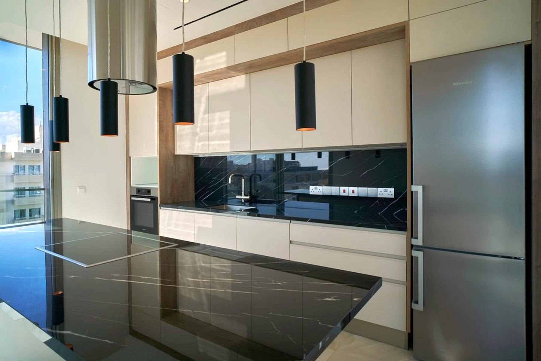 Introducing a stunning new residential development featuring luxurious apartments spread across five floors. Located in a prime area of Limassol, this building is surrounded by peaceful greenery and upscale developments and parks. Just 200 meters from Limassol’s scenic seafront promenade and sandy beaches, residents can enjoy the best of coastal living. The vibrant high street, filled with shops, restaurants, and essential services, is also within easy reach, promising convenience and an enviable lifestyle. Built with great attention to detail, the modern apartments feature high 3-meter ceilings and are furnished with top-quality Italian furniture while the kitchens by Ortolani Gianfranco are fitted with Miele white goods.