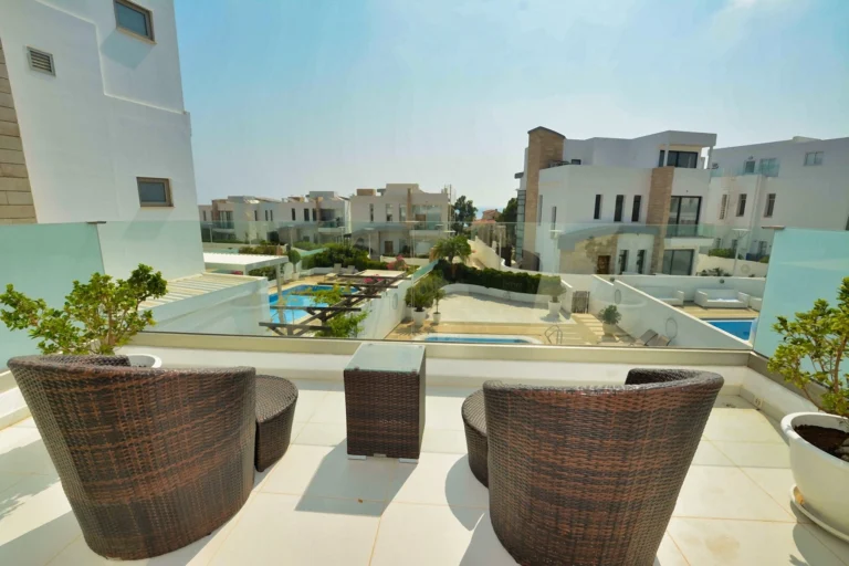 This stunning 5-bedroom luxury villa is part of a modern complex in the prime location of Protaras, just steps away from the sandy beach. Offering an idyllic setting for both permanent living and holiday rentals, it is conveniently close to the center of Protaras, where all amenities such as shops, bars, restaurants, and supermarkets are within walking distance. Located in a gated project, the villa ensures safety, privacy, and tranquility for its residents.