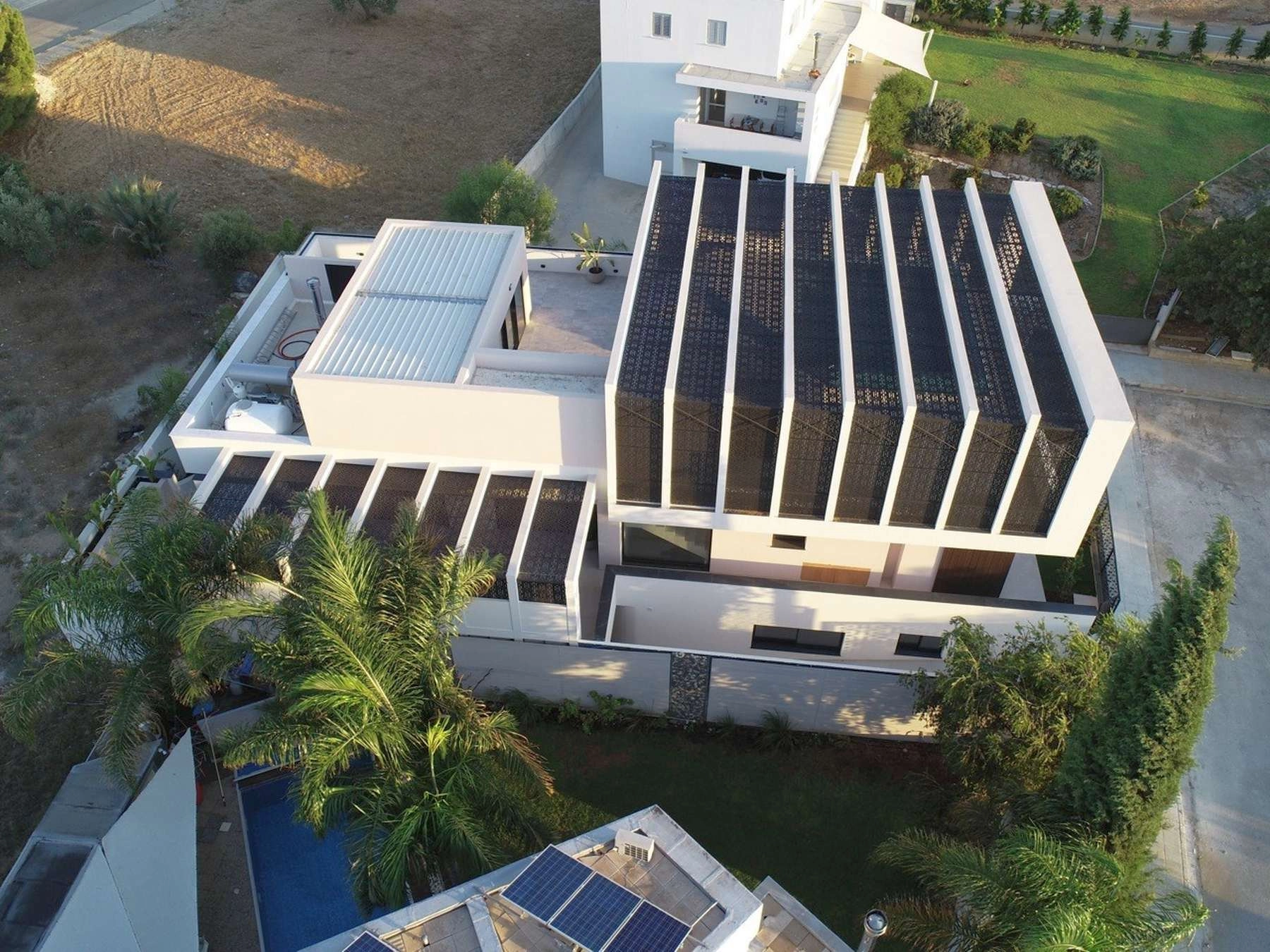 This unique 3-level residence, situated in the quiet neighborhood of Latsia in Nicosia, offers a luxurious living experience. The property is accessed via an almost private circular road that leads to an oversized cul-de-sac, ensuring privacy and safety for residents.