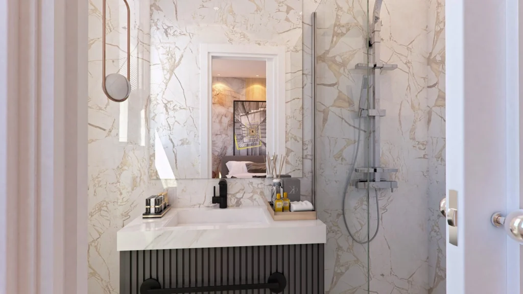 The four-floor building showcases contemporary architecture, sophisticated interior design, and high-quality finishes, creating an elegant and luxurious ambiance both within the apartments and in the communal areas.