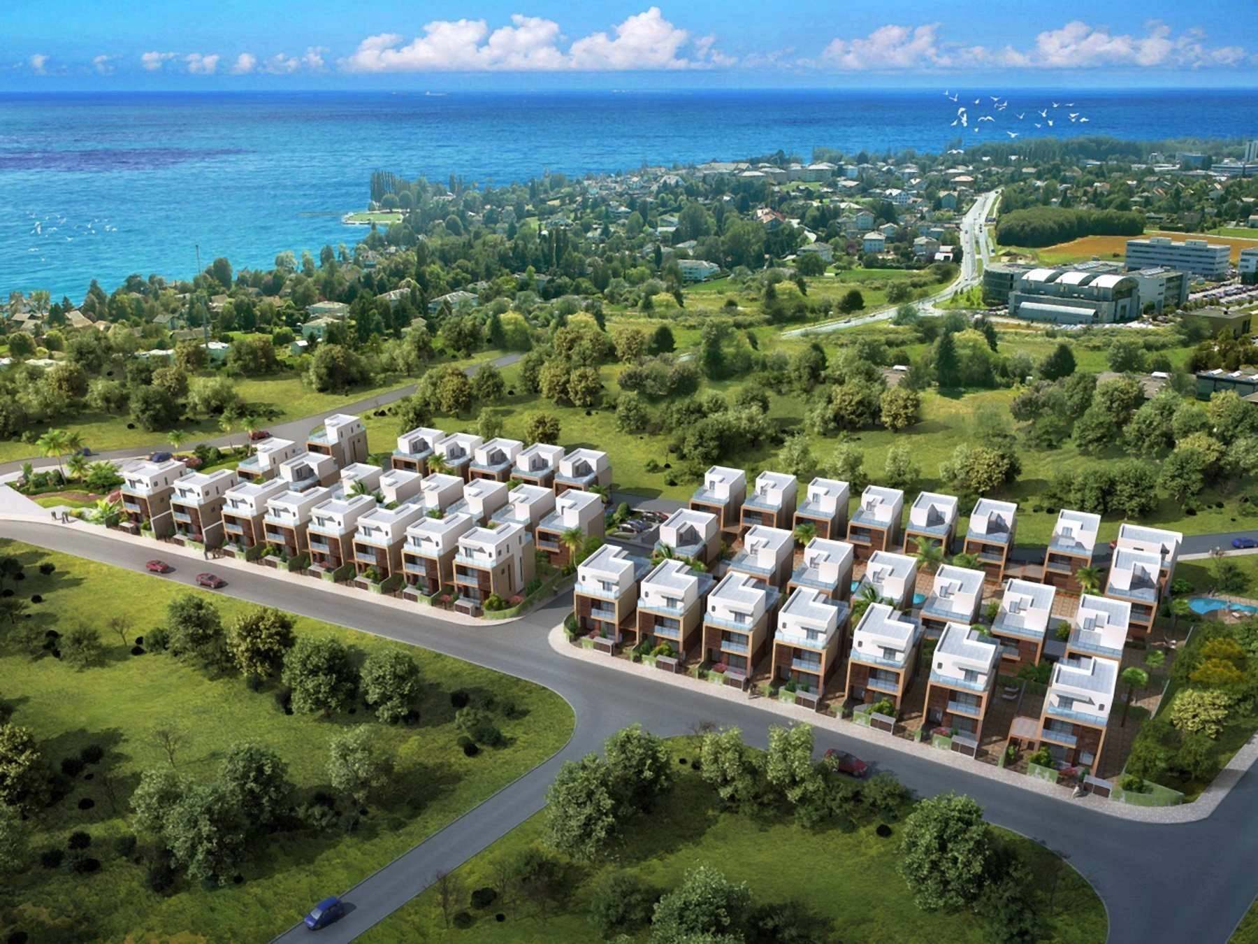 The complex features three different types of houses, each with its own unique design and style. Most of the villas come with covered private parking and the added luxury of a private swimming pool, perfect for enjoying the Mediterranean weather. Every villa in this complex is equally luxurious, showcasing a design that meets the highest standards and utilizes the finest quality materials. These detached houses are fully equipped with all the necessary modern engineering communications, ensuring a convenient and comfortable living experience.