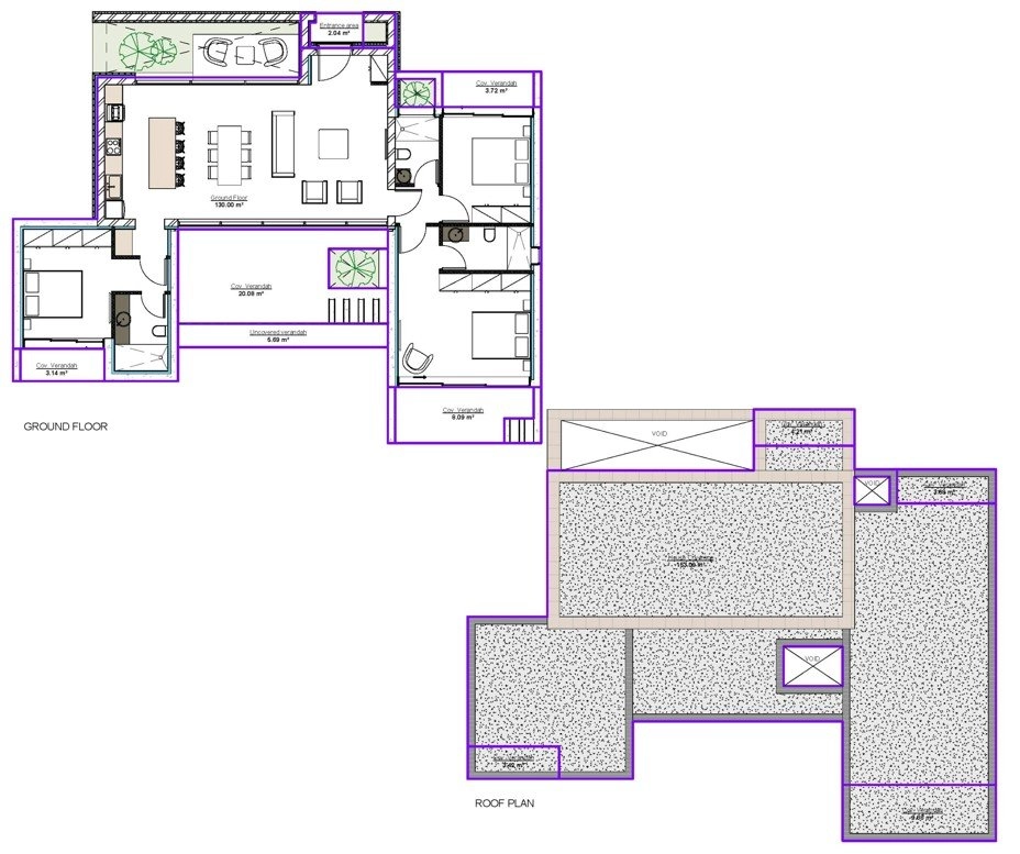 • Covered Veranda: 35 m²