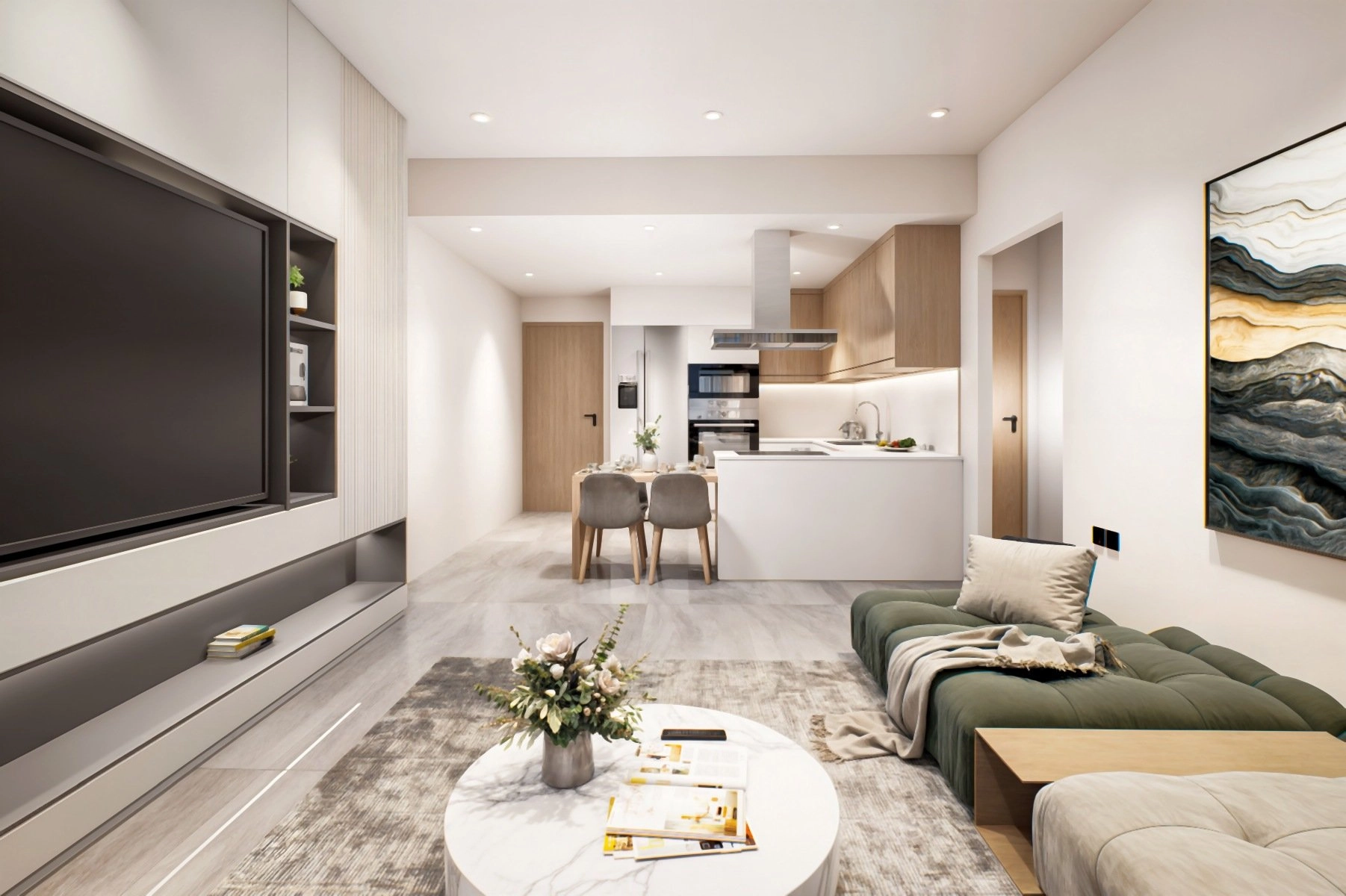 Comprising one-, two-, and three-bedroom apartments spread across three floors, this development caters to a variety of lifestyles. Each apartment features a unique modern open-plan layout, seamlessly integrating space and natural light for an effortlessly refined atmosphere. Specifications include laminate parquet floors in the bedrooms, Spanish porcelain floor tiles, Grohe sanitary ware, and the option to install concealed VRV air-conditioning and underfloor heating to create a comfortable atmosphere in your home in any season.