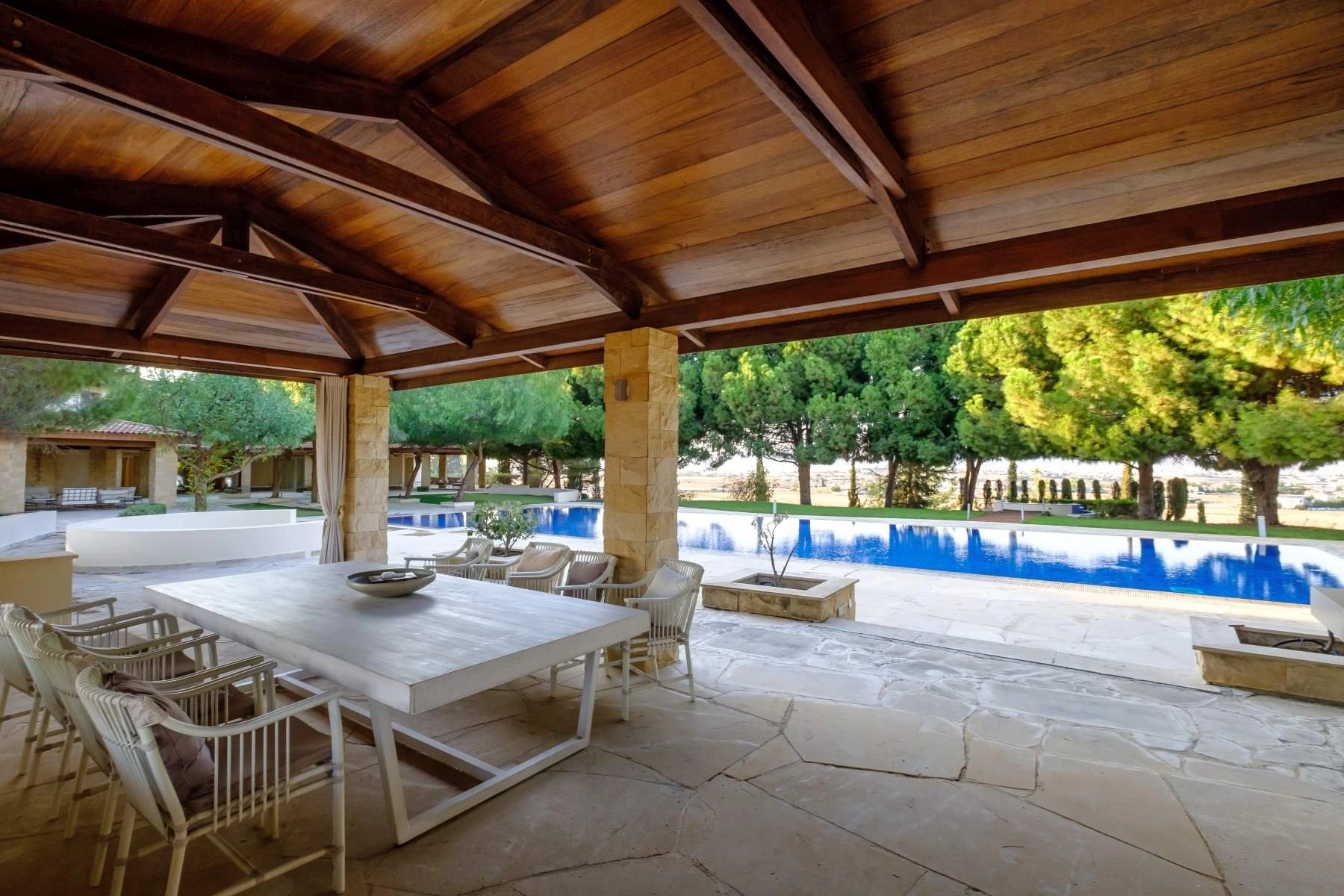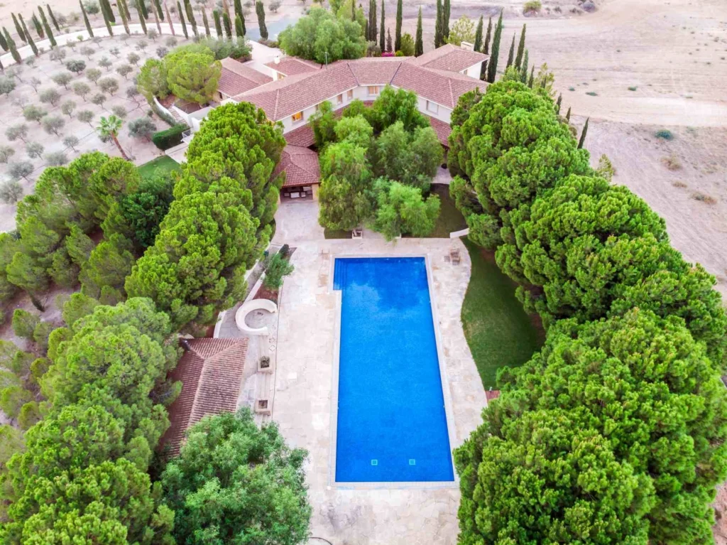 Nestled on a sprawling plot in a serene area of Nicosia, this exquisite villa is surrounded by lush greenery and mature landscaping, offering a picturesque setting for a luxurious lifestyle.