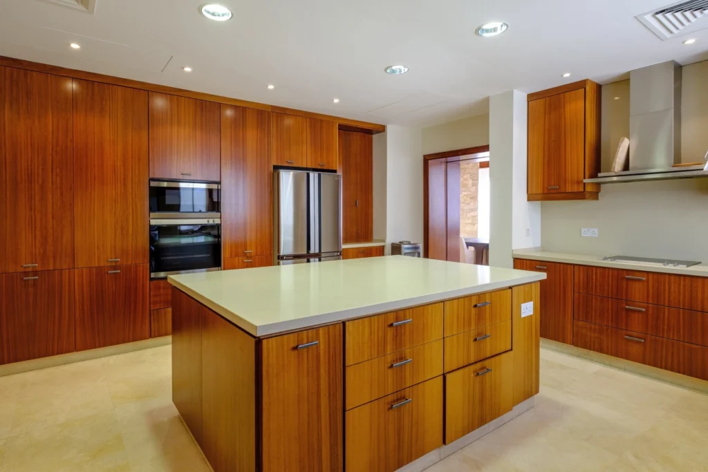 At the heart of the outdoor space is a grand Olympic-sized swimming pool, perfect for both leisurely swims and rigorous exercise. The villa’s design seamlessly blends indoor and outdoor living, with expansive terraces and a designated outdoor cooking area ideal for entertaining.