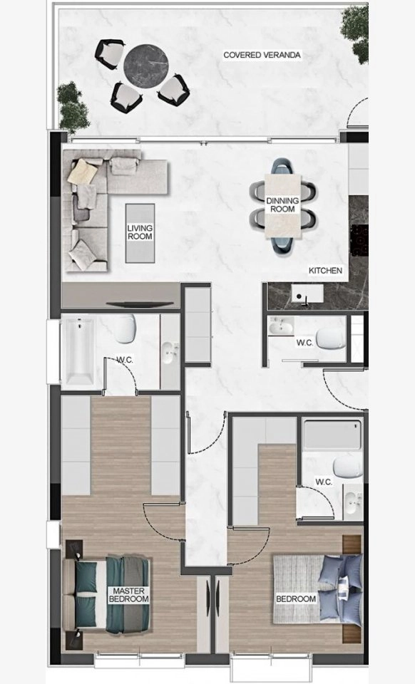 The apartments are designed with spacious living areas and large verandas that offer beautiful views, making them highly desirable. This luxurious project is crafted to meet all the requirements of contemporary residential properties, with a carefully thought-out design, top-quality building, and finishing materials. The stylish architecture seamlessly complements the surrounding environment.