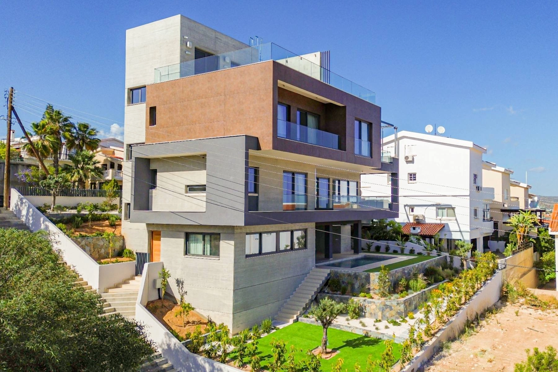 The villa is located in a secure and peaceful neighborhood, making it ideal for families. Situated close to private schools and the acclaimed Limassol Marina, this villa offers the perfect blend of accessibility and serenity. Its elevated location in Panthea provides stunning city views and a sense of exclusivity.