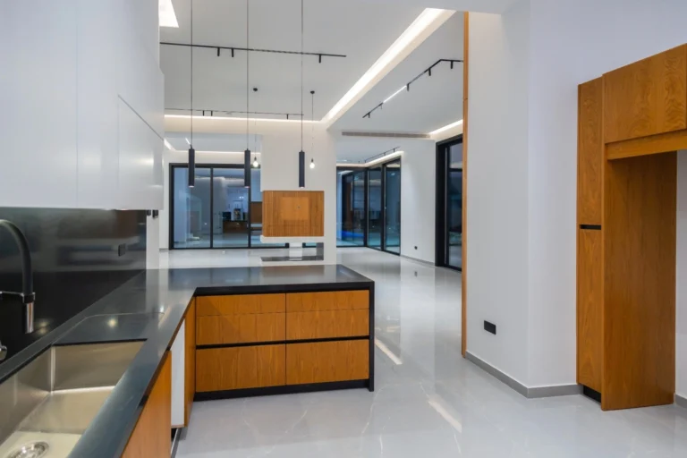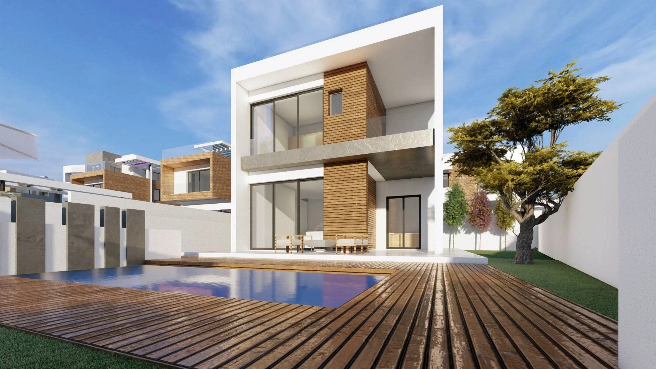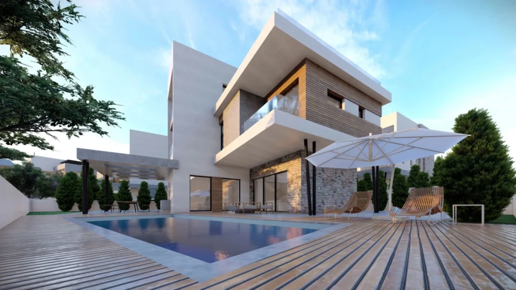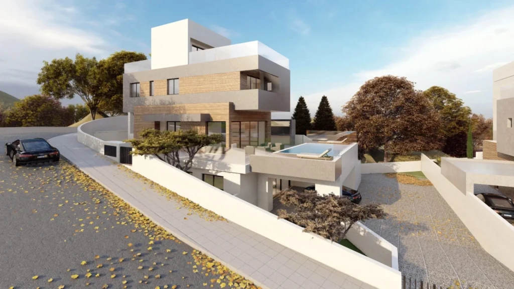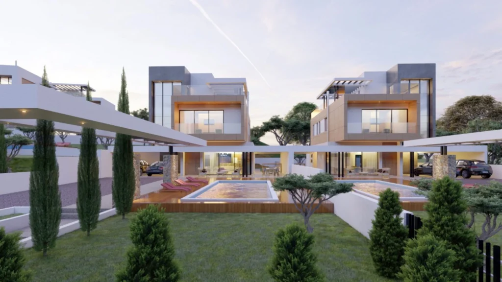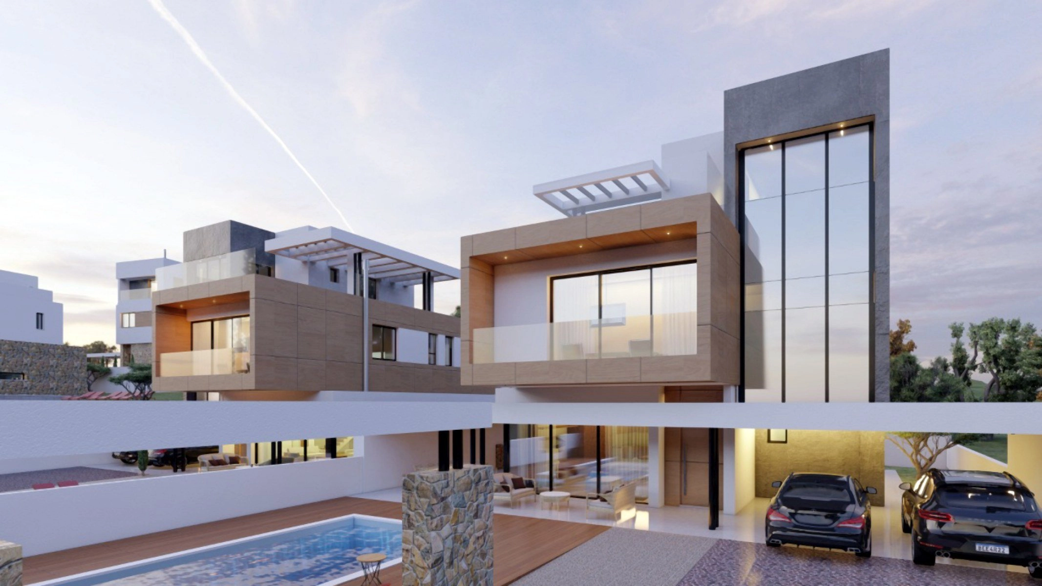 These ultra-modern villas are perched high above the beach in Ayios Tychonas on the outskirts of Limassol. The 5-bedroom homes boast an enviable location in a secluded spot with stunning views.