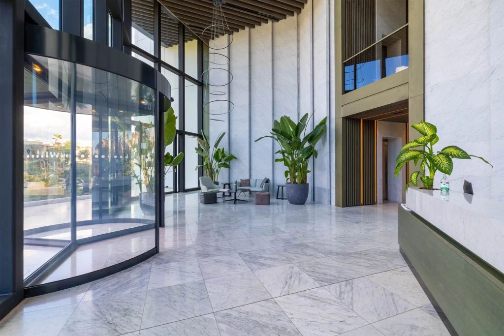 The complex, developed by a leading London architectural firm, seamlessly integrates into Limassol’s urban landscape, combining sophistication, comfort, and modern design. The apartment itself features a ceiling height of 3.15 meters and is finished to the highest standards, ensuring a luxurious living experience. The stunning panoramic views of the Mediterranean Sea deserve a special mention.