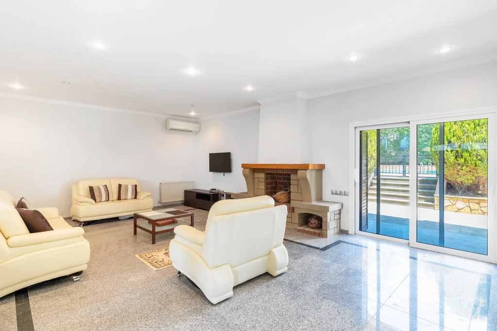 The property offers stunning views of the sea, the mountains, and the city. All the elegantly furnished and equipped areas of the house, including four bedrooms, the living room and the kitchen, are fitted with air conditions to ensure comfortable climate year-round. In winter months you will appreciate two cozy fireplaces, one in the living room and one in the hall upstairs, and the central heating system. The villa features a pool area with a dressing room, shower, wc, and a pool bar, a barbecue area, and a large garden with fruit trees, creating perfect conditions for outdoor relaxation. A covered 1-vehicle parking and a spacious uncovered area for 7 cars add extra convenience.