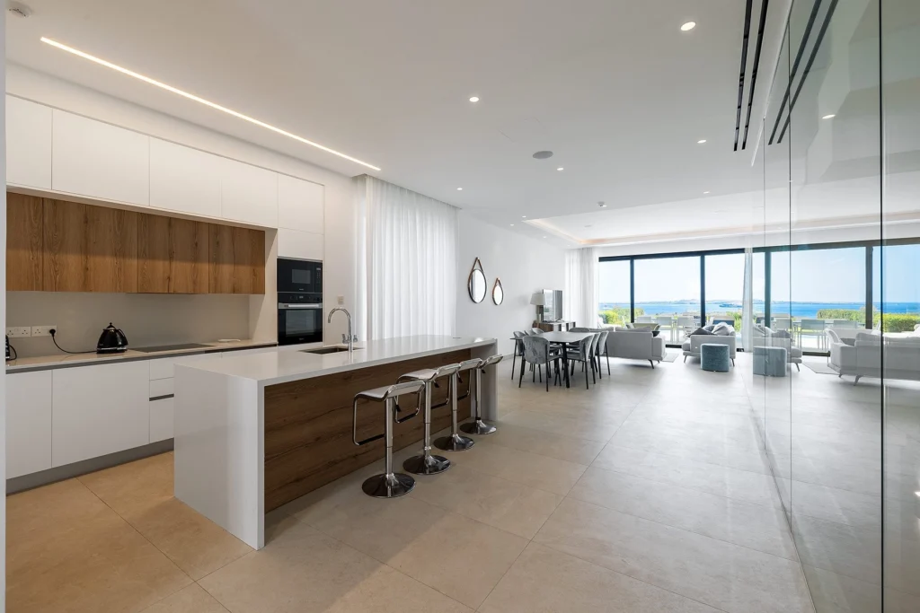 This exquisite 5-bedroom villa is situated on the seafront within a gated community, nestled in the breathtaking landscape of Cavo Greco National Park. Surrounded by majestic nature and rolling countryside, the villa offers uninterrupted views of the Mediterranean’s endless blue and easy access to the idyllic Konnos Beach, known for its fine golden sands.