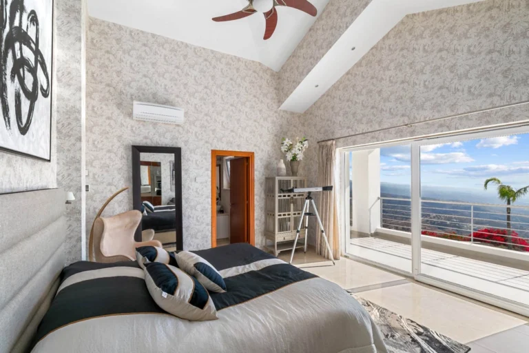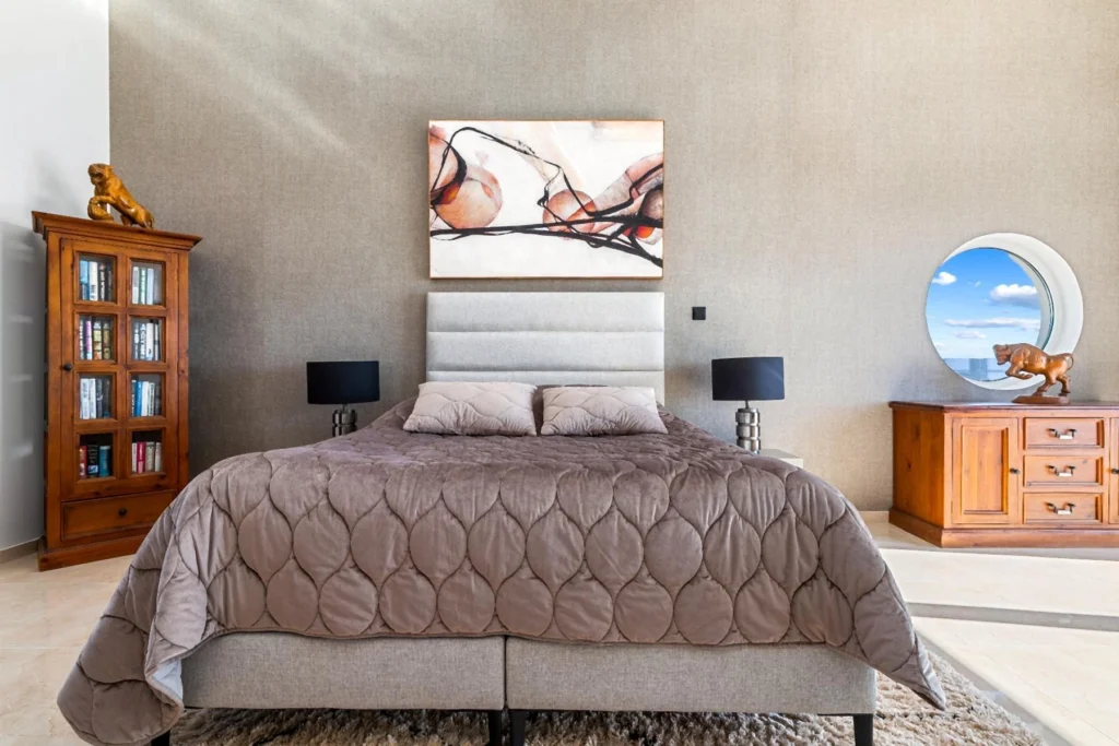 The large upstairs bedrooms are open to a vast terrace overlooking the coast. The airy master bedroom has a large ensuite luxurious bathroom and a spacious walk-in closet.