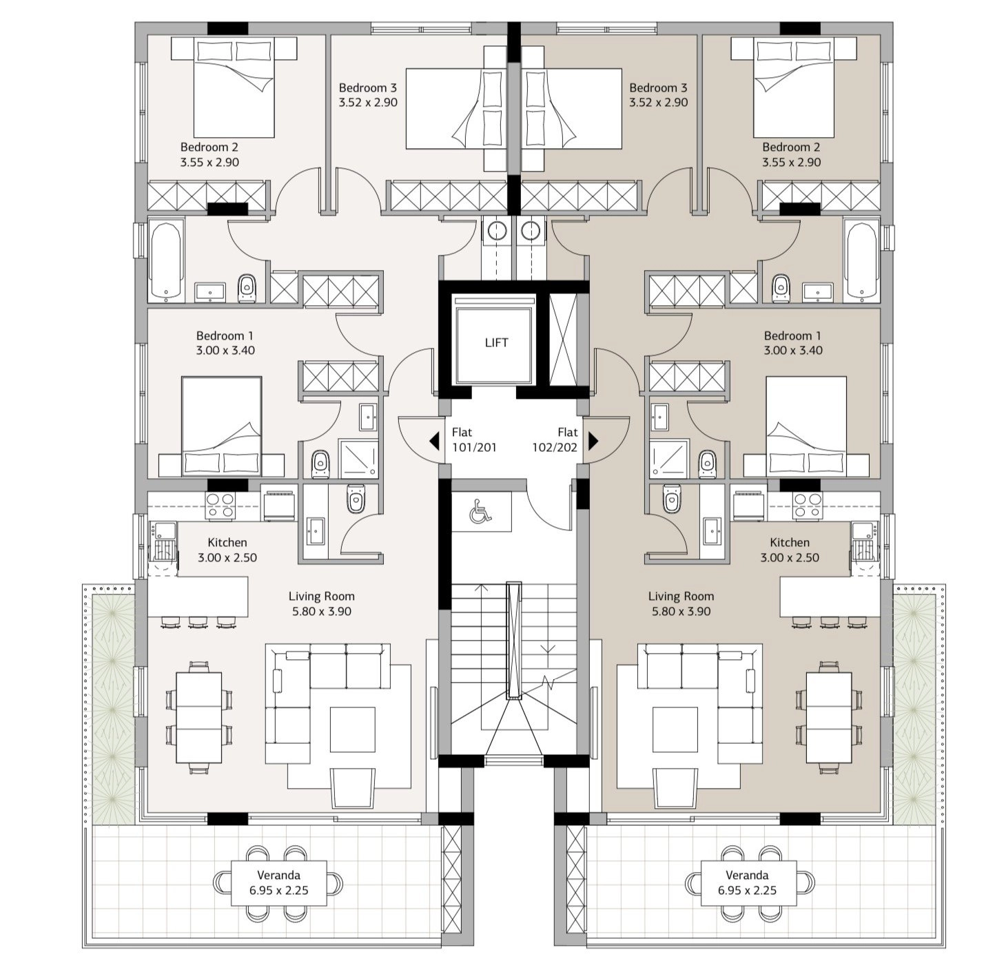 The building’s exterior combines contemporary concrete elements with high-pressure laminate panels, creating a timeless aesthetic. Inside, the interiors showcase top-quality finishes, including Italian kitchens, premium ceramic tiles, and laminated wooden flooring in the bedrooms. Double-glazed windows ensure excellent thermal insulation, while provisions for electric car chargers enhance modern comfort.