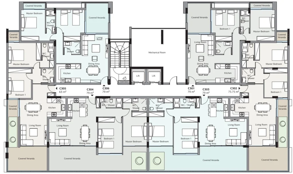 The apartments feature a modern layout that optimizes space and natural light, with cozy and spacious bedrooms designed to ensure a restful night’s sleep. Specifications include VRV cooling systems, underfloor heating, laminated parquet flooring, luxurious imported marble for the stairs, and custom-designed built-in wardrobes. The complex offers secure gated access, ample off-street parking, a stunning swimming pool and entertainment terrace, a children’s playground, and a BBQ area with a bar, all set within beautifully landscaped grounds.