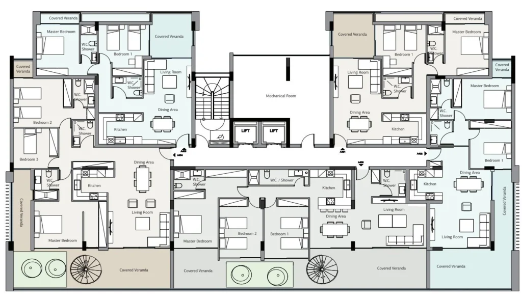 The apartments feature a modern layout that optimizes space and natural light, with cozy and spacious bedrooms designed to ensure a restful night’s sleep. Specifications include VRV cooling systems, underfloor heating, laminated parquet flooring, luxurious imported marble for the stairs, and custom-designed built-in wardrobes. The complex offers secure gated access, ample off-street parking, a stunning swimming pool and entertainment terrace, a children’s playground, and a BBQ area with a bar, all set within beautifully landscaped grounds.