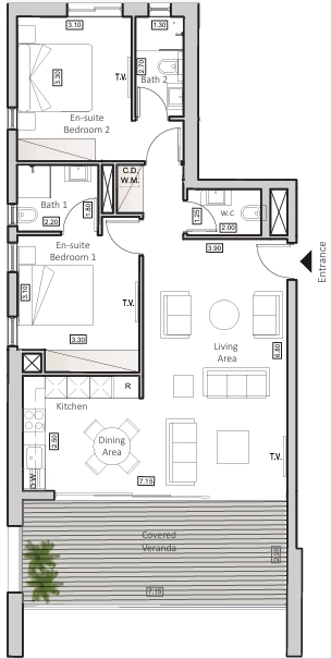 These homes boast high-end features such as smart home systems, optional underfloor heating, mosquito nets on all aluminium windows and premium ceramic flooring. With A-class energy efficiency and VRV air-conditioning, the apartments offer a sustainable and comfortable lifestyle.