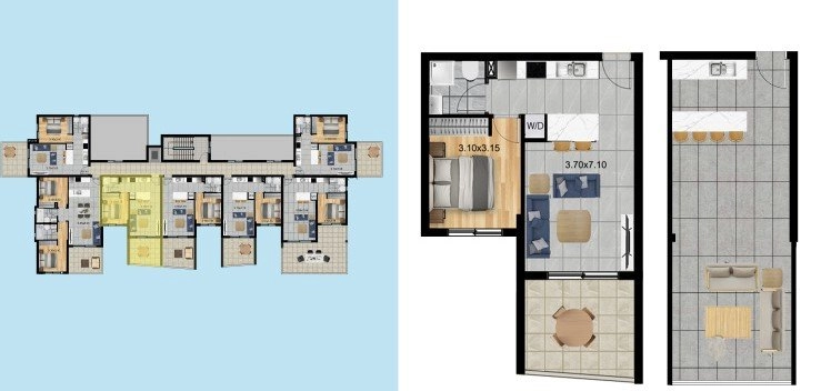 The apartments, available in thoughtfully designed one and two-bedroom layouts, boast open-plan living spaces, large windows for abundant natural light, and private covered balconies. Each home is finished with elegant touches, from marble-look porcelain tiles to modern kitchen cupboards and sleek sanitary ware. Each unit comes with covered parking and a private storeroom for added convenience.