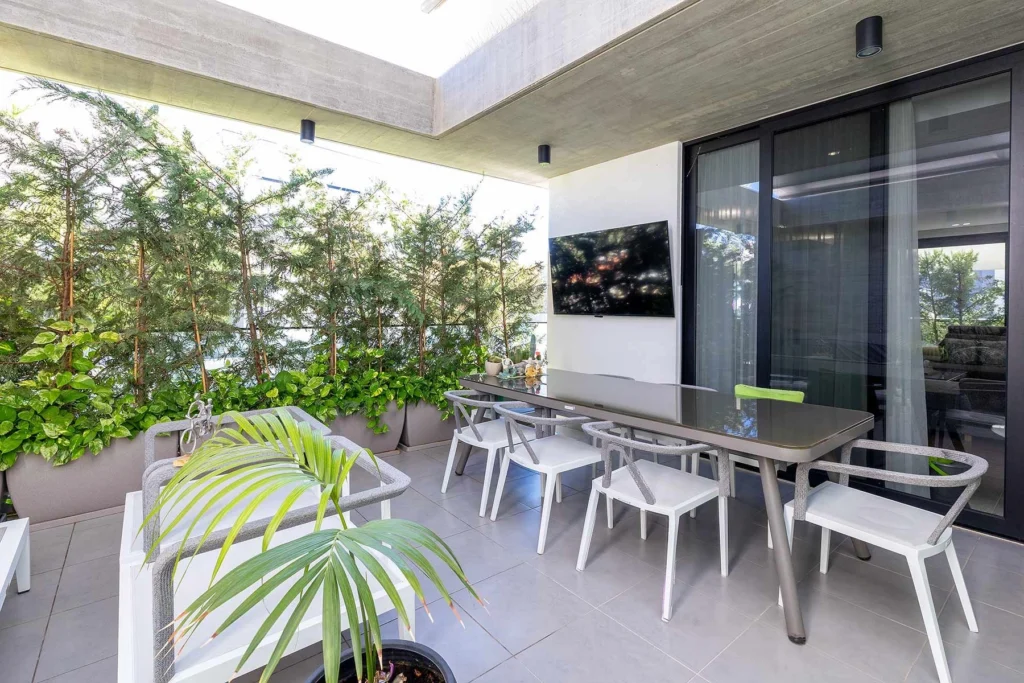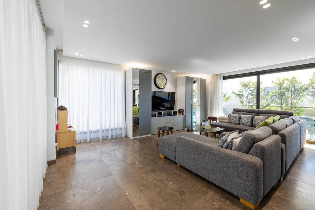 Spanning a total area of 275 square meters, the penthouse boasts a spacious open-plan layout enhanced with modern design and elegant furnishings. It features a generous covered veranda designed for outdoor relaxation, where you can enjoy your morning coffee or evening gatherings with friends. Underfloor heating and VRV air conditioning systems provide the perfect climate year-round. The addition of a private rooftop pool adds a luxurious resort-like atmosphere, creating a vacation vibe at home.