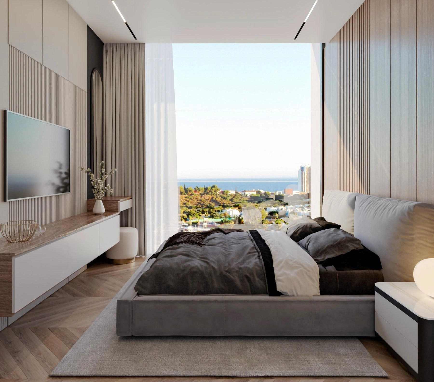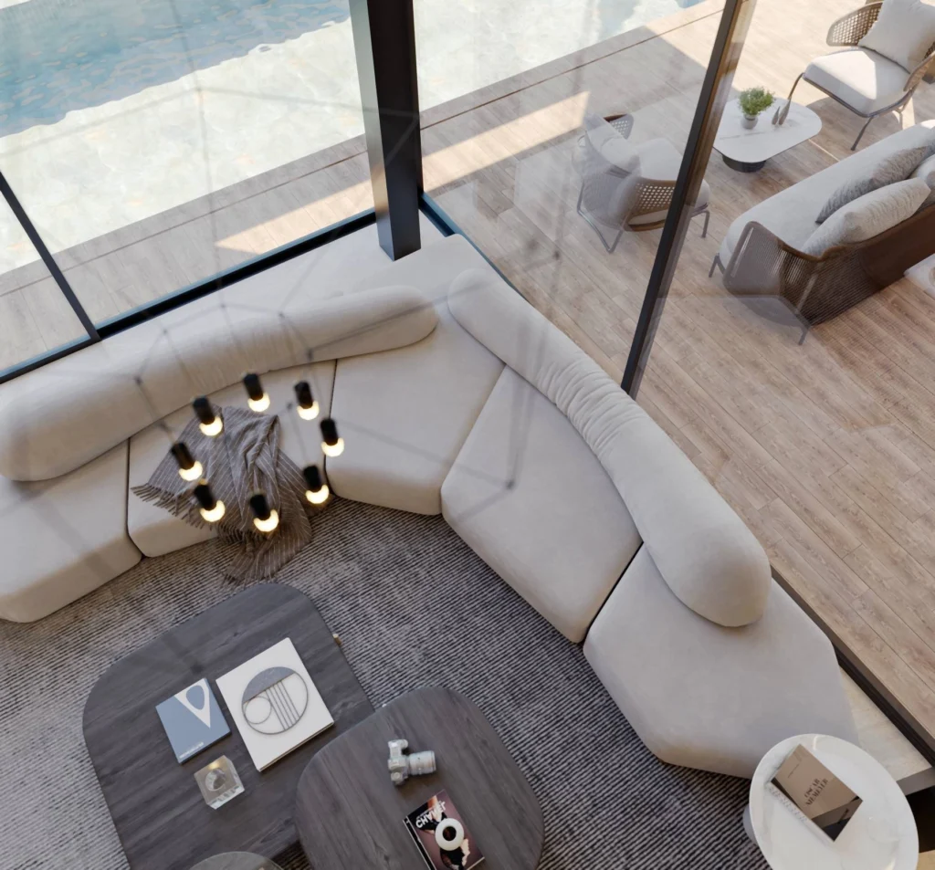 The villa’s architectural design is centered around providing stunning sea views from every room, complemented by an infinity cascading pool that enhances the luxury living experience.