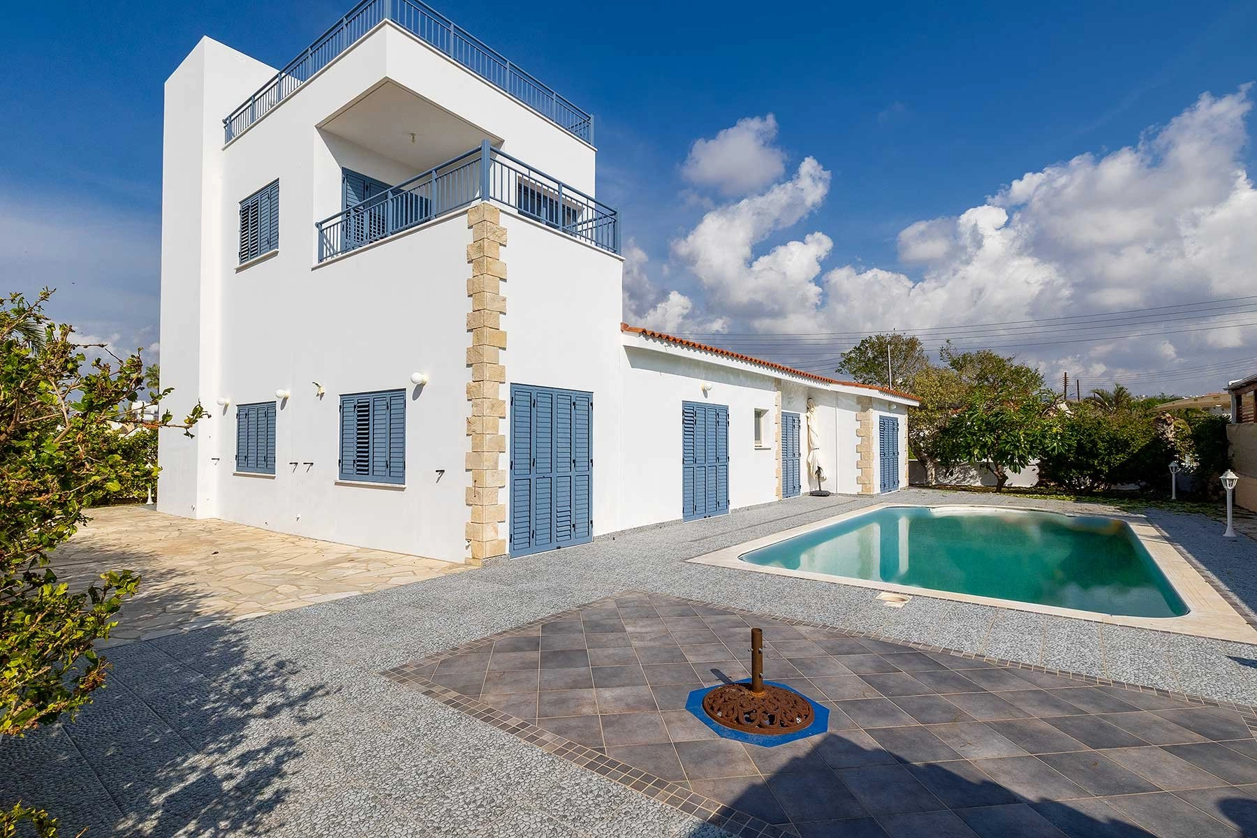 For your comfort, the villa features central heating and a private swimming pool outdoors, perfect for refreshing summer dips. The prime location ensures convenient access to a range of amenities; within a short walking distance, you’ll find an assortment of restaurants, bars, and shops, a bus stop within a short walk, and a private International School only a 3-minute drive away.