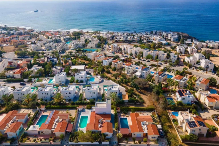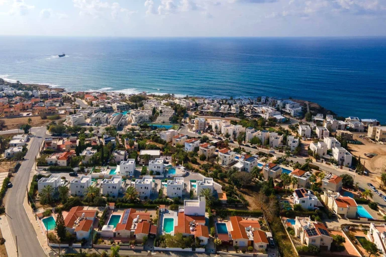 Discover an exquisite villa, ideally located on a prime, expansive plot in the heart of the seaside area of Chloraka, near Pafos. This retreat boasts unobstructed panoramic views of Pafos, the surrounding landscape, and the stunning sea.