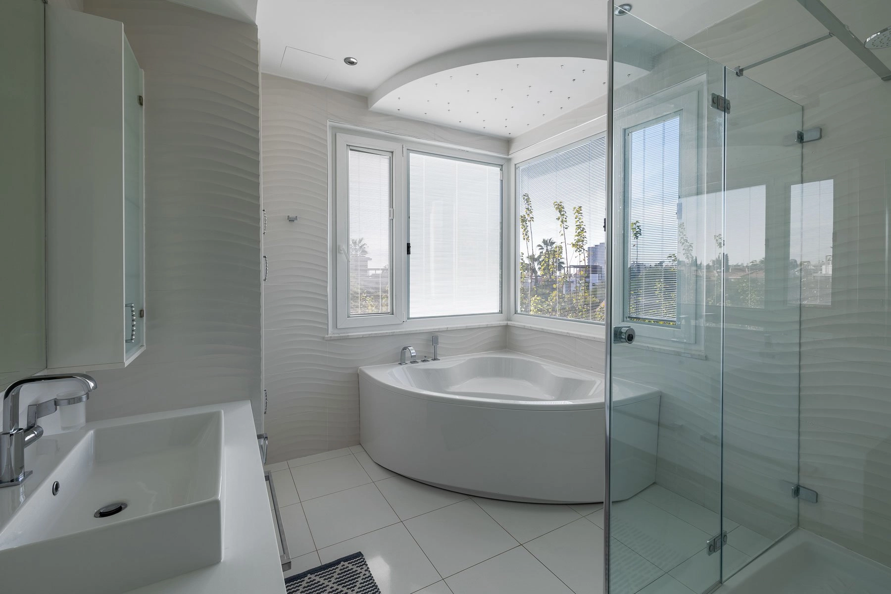 Accessed via a lift or luxurious staircase, the first floor hosts four spacious bedrooms, each with its own en-suite bathroom. The master suite includes an opulent en-suite bathroom, dressing room, and private sea view balcony.