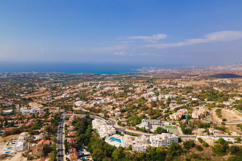 The complex is situated in an elevated position just a short walk from the centre of the village, offering a selection of cafes, restaurants, supermarkets, and a bank. Here, you can fully appreciate breathtaking views of both the mountains and the Mediterranean Sea. The sandy beaches of Coral Bay and the city of Pafos, with all its urban amenities, are within a few minutes’ drive.