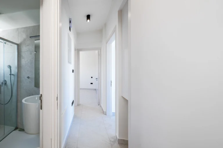 The penthouse is designed to maximize comfort and functionality, featuring spacious terraces and verandas that provide a space for relaxation in the open air with panoramic views of the city and sea. Large glass panels allow natural light to fill the interiors and connect the living spaces to the outdoors, while the glass balustrades ensure minimal visual obstruction.
