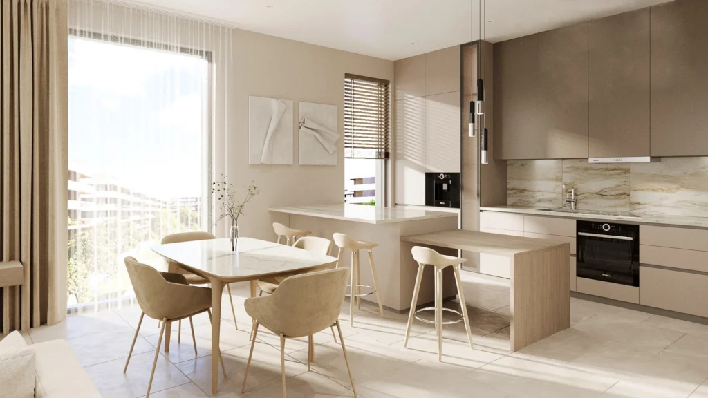 Located just 15 minutes’ drive from Larnaca’s vibrant city center, the project provides convenient access to city amenities while maintaining the serenity of suburban life. Residents will enjoy an array of premium facilities, including swimming pools, fitness center, spa, a business lounge, green lush gardens and charming cafes, ensuring a well-rounded and comfortable lifestyle.