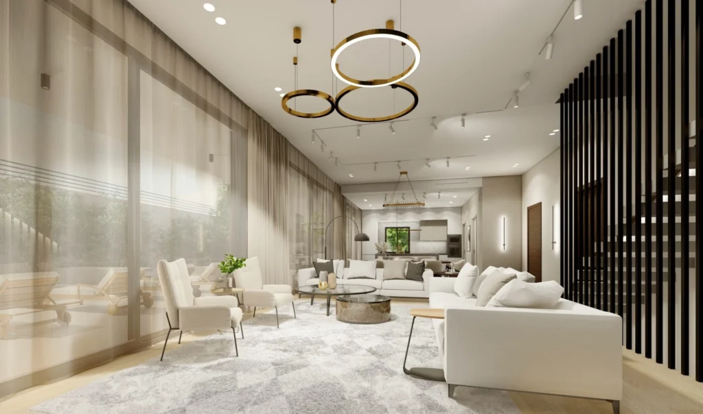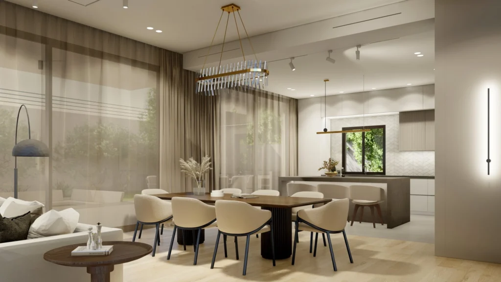 The interiors showcase meticulous craftsmanship, featuring high-quality finishes and materials. Spacious open-plan layouts provide a comfortable flow between living areas, while the bedrooms offer a private retreat with laminate flooring and ample wardrobe space. Kitchens are equipped with sleek countertops and elegant cabinetry, combining style with functionality.
