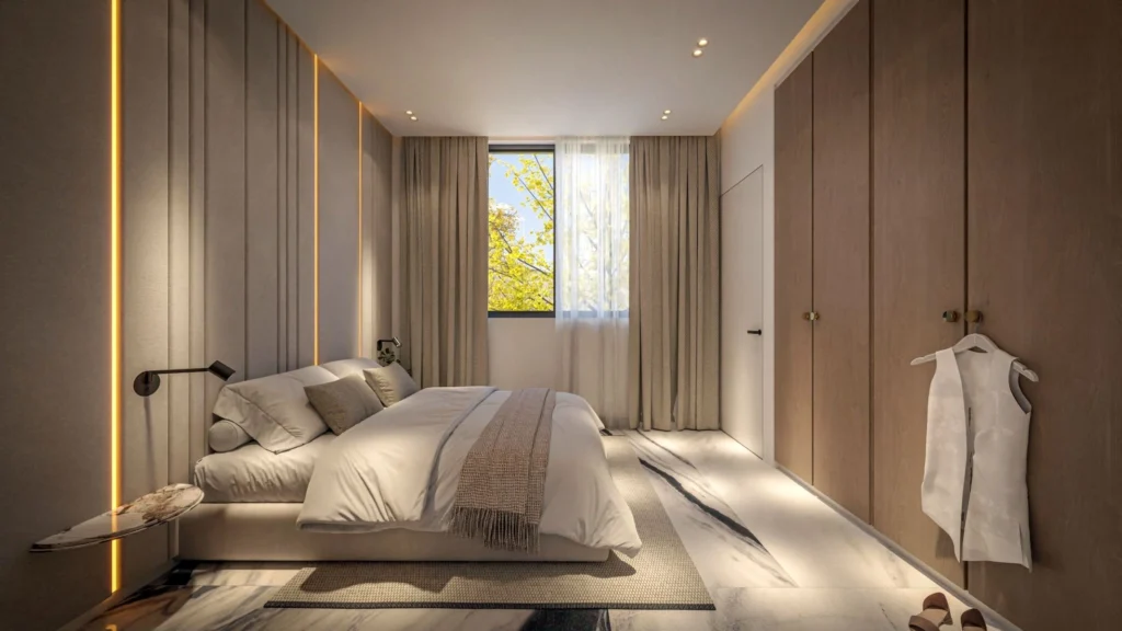 With just one spacious flat per floor, residents enjoy unmatched privacy and exclusivity. Each flat has two spacious bedrooms and two modern bathrooms, designed with comfort and practicality in mind. High-end interior finishes bring a sense of sophistication to each room, while a private lift provides convenience and security.