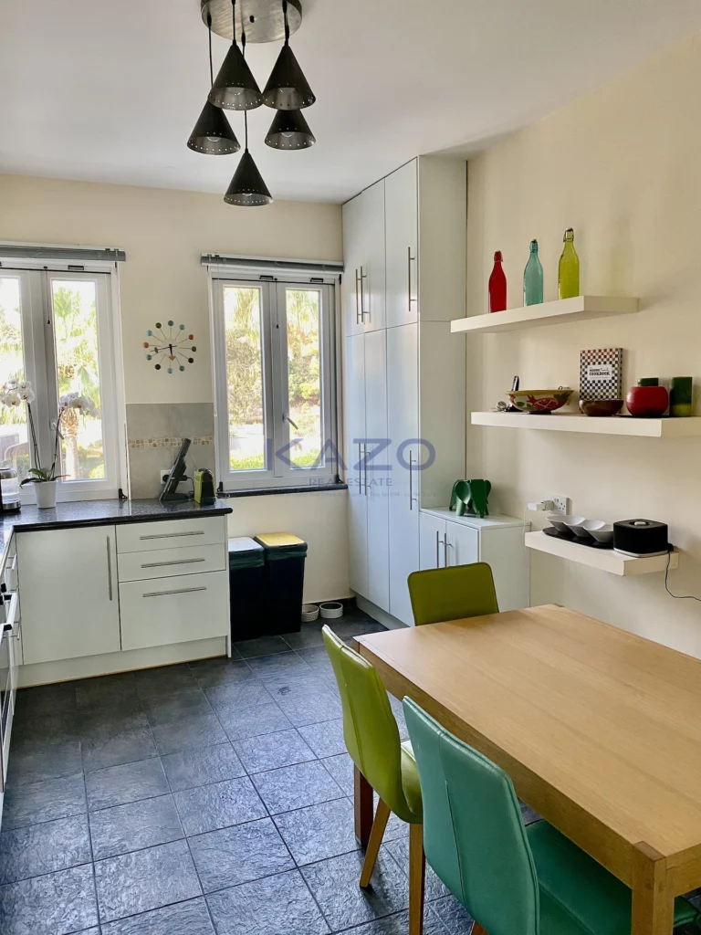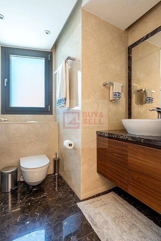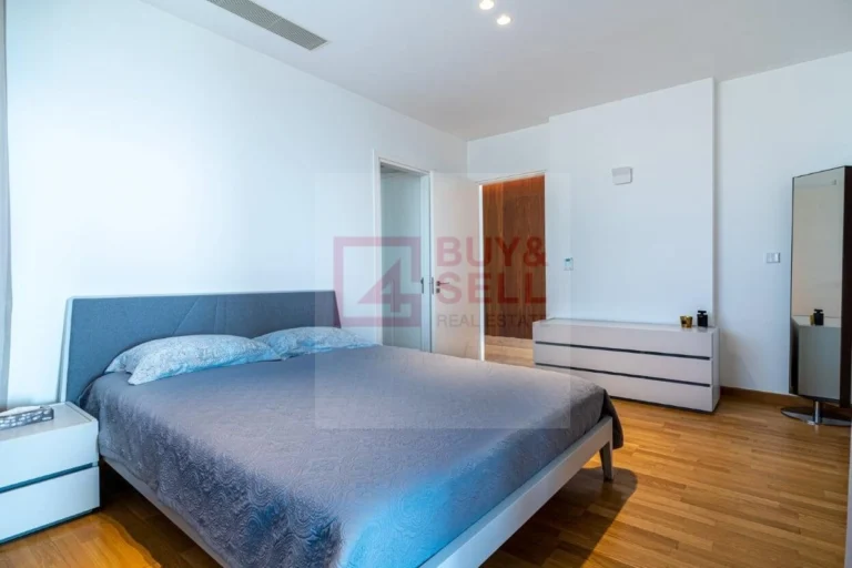 Located just 500 meters from Limassol’s sandy beaches, this two-bedroom apartment blends luxury and convenience. Its thoughtful design emphasizes comfort, with open-plan living and dining areas illuminated by large thermal aluminum windows. The modern kitchen is both functional and stylish.
