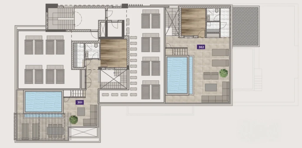 Residents benefit from a thoughtfully designed communal space, including an overflow swimming pool with a sun deck, covered parking, and individual storage rooms. With its blend of sophisticated architecture, high-quality finishes, and prime location, this development is a perfect choice for both refined living and sound investment.