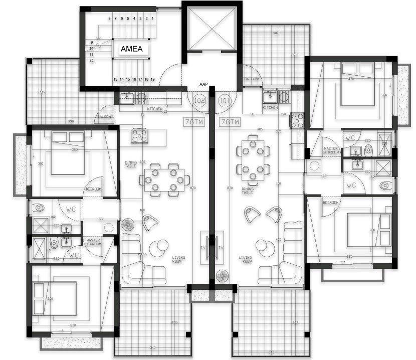 The building comprises six meticulously designed apartments, including five two-bedroom units and a stunning penthouse. Each residence features spacious interiors, expansive terraces, and premium finishes, providing the perfect balance of style and functionality. Large, light-filled living spaces flow seamlessly into outdoor areas, creating a harmonious environment for relaxation and entertainment.