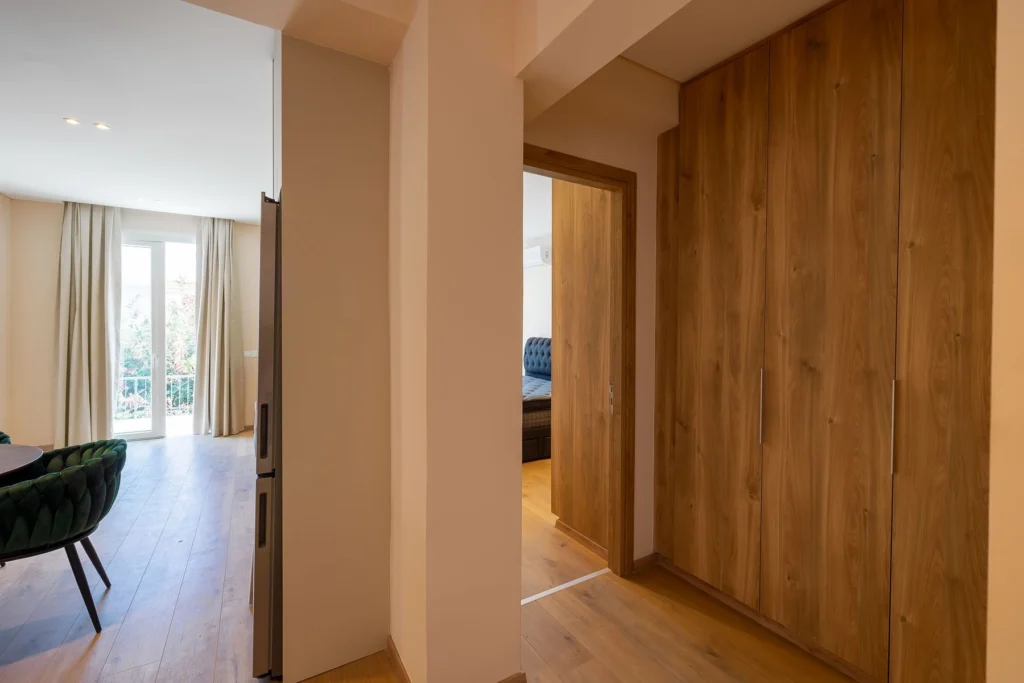 The apartment’s interior includes an open-plan design with a kitchen, dining area, and living area, as well as three inviting bedrooms and two bathrooms, ensuring optimal comfort for family and guests. In addition, the apartment has private parking for one car, providing convenience and ease for residents.