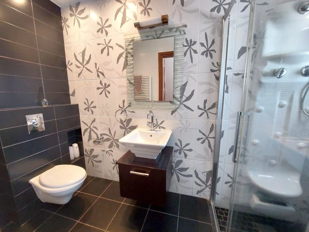 Set on a 343 m² plot, the house features 223 m² of thoughtfully designed living space across two levels. The ground floor includes an open-plan living, dining, and kitchen area, complemented by a cozy bedroom and bathroom. Upstairs, three spacious bedrooms await, including a master suite with an en-suite bathroom, as well as an office, a kitchenette/laundry area, and a family bathroom. The attic provides versatile space for a playroom or storage.