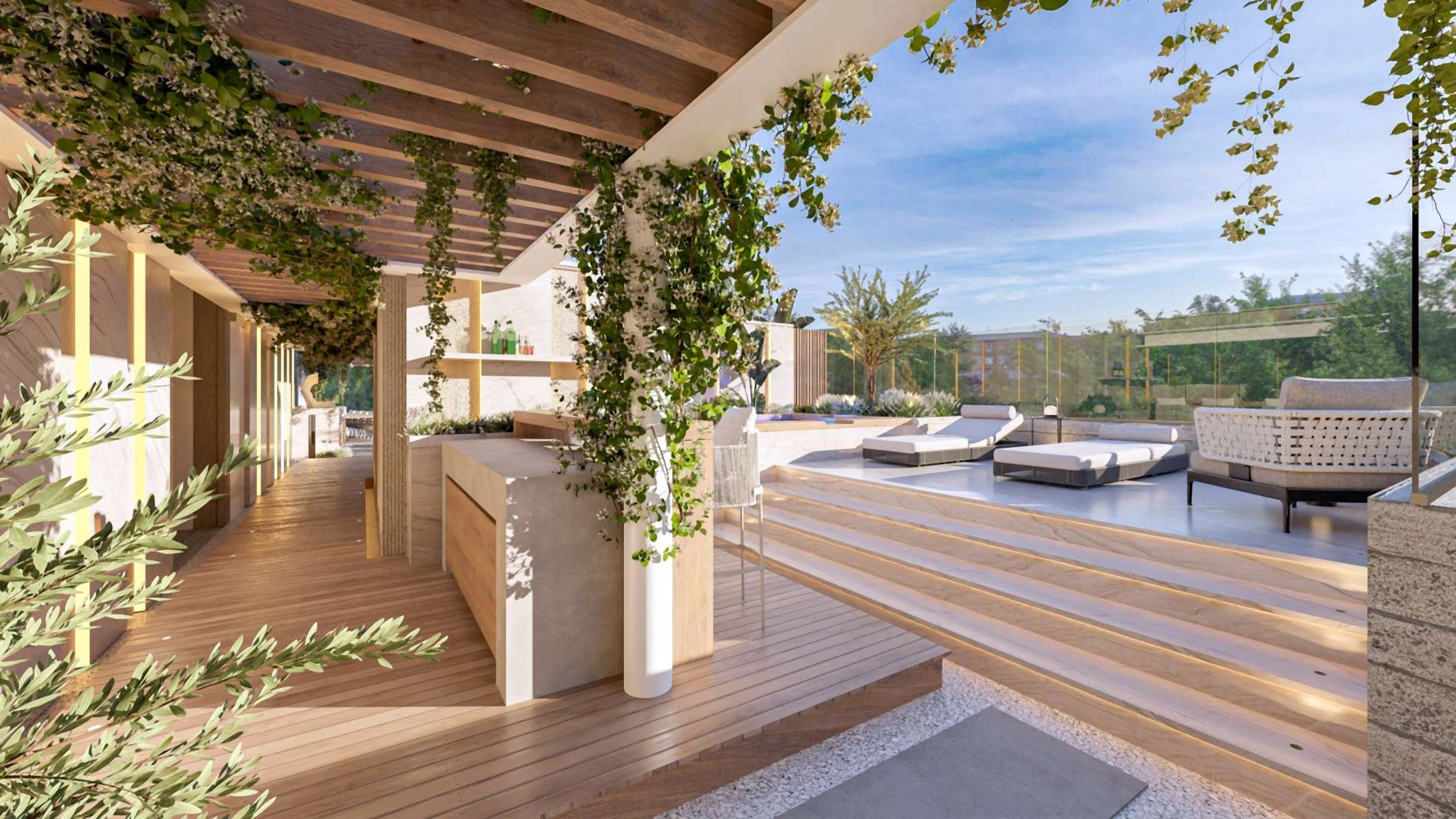 Residents can enjoy premium amenities, including a heated swimming pool, a fully-equipped gym, and a relaxing sauna, all crafted to provide a sense of well-being and luxury. Built with sustainability in mind, the property incorporates a photovoltaic system for energy efficiency, as well as provisions for underfloor heating and air-conditioning to ensure year-round comfort.