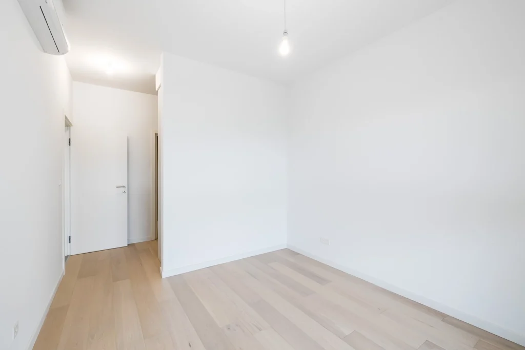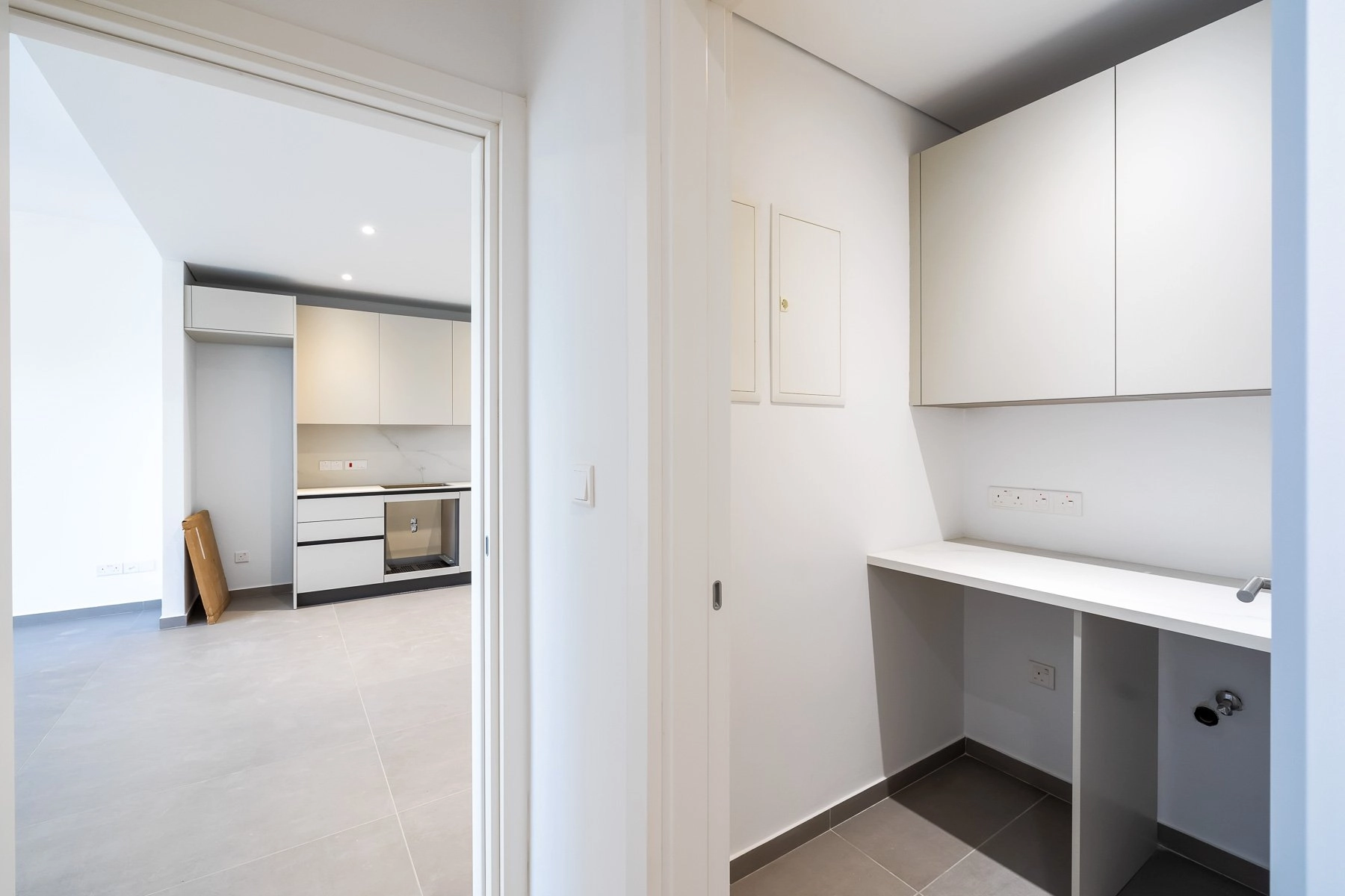 The thoughtfully designed interiors feature a sunlit living room, a stylish dining area, and a refined kitchen with modern finishes. The two well-appointed bedrooms include built-in wardrobes, ensuring ample storage, while the use of high-end materials throughout the apartment creates a warm and inviting atmosphere. A private veranda serves as the perfect retreat for unwinding in the fresh air, whether enjoying a quiet morning or an evening under the city lights.