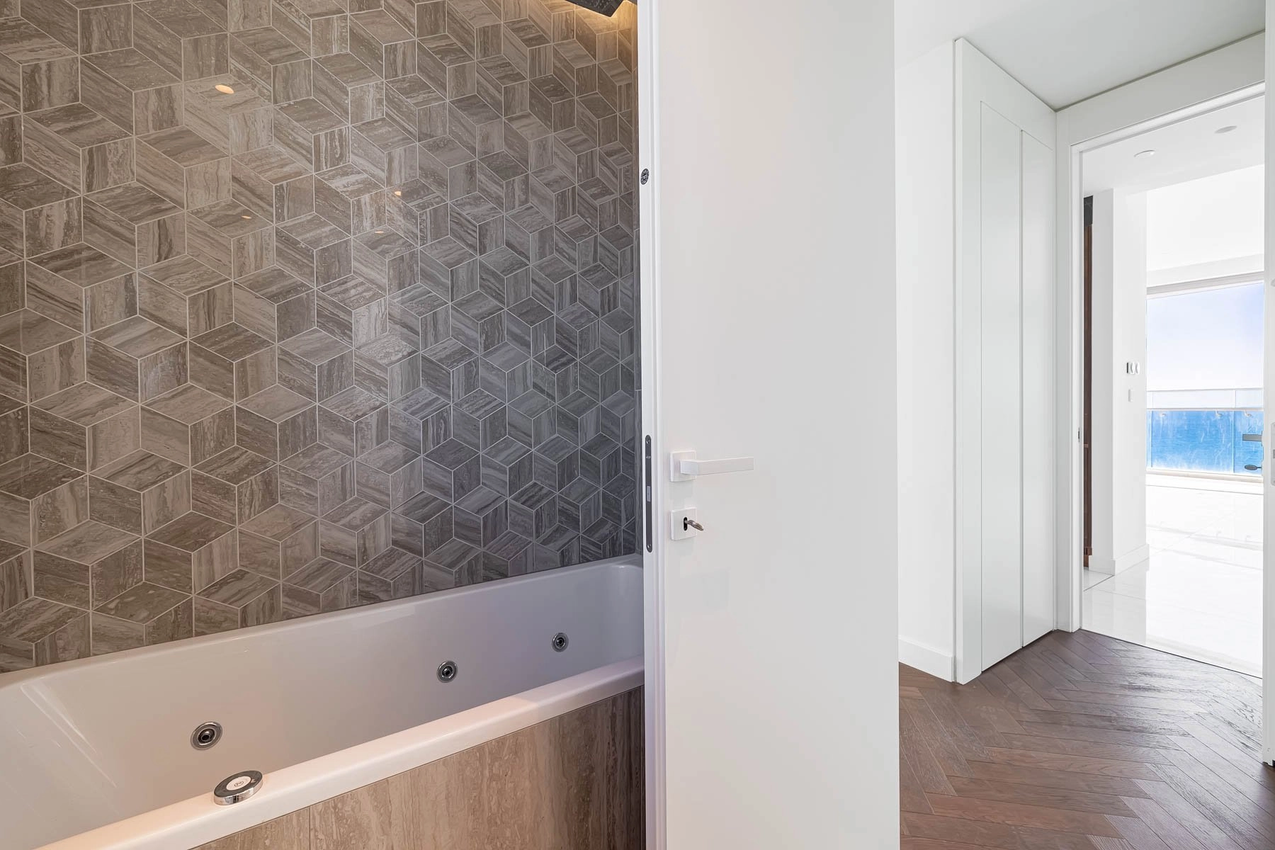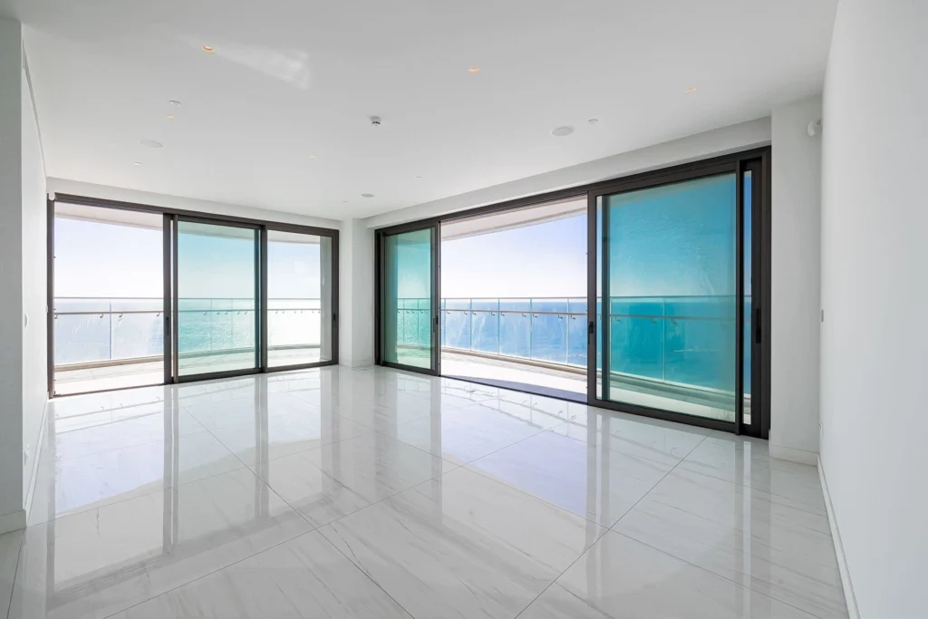 Designed for seamless indoor-outdoor living, floor-to-ceiling windows frame the mesmerizing Mediterranean views, while a spacious private veranda extends the living space, offering a serene retreat to soak in the coastal ambiance.