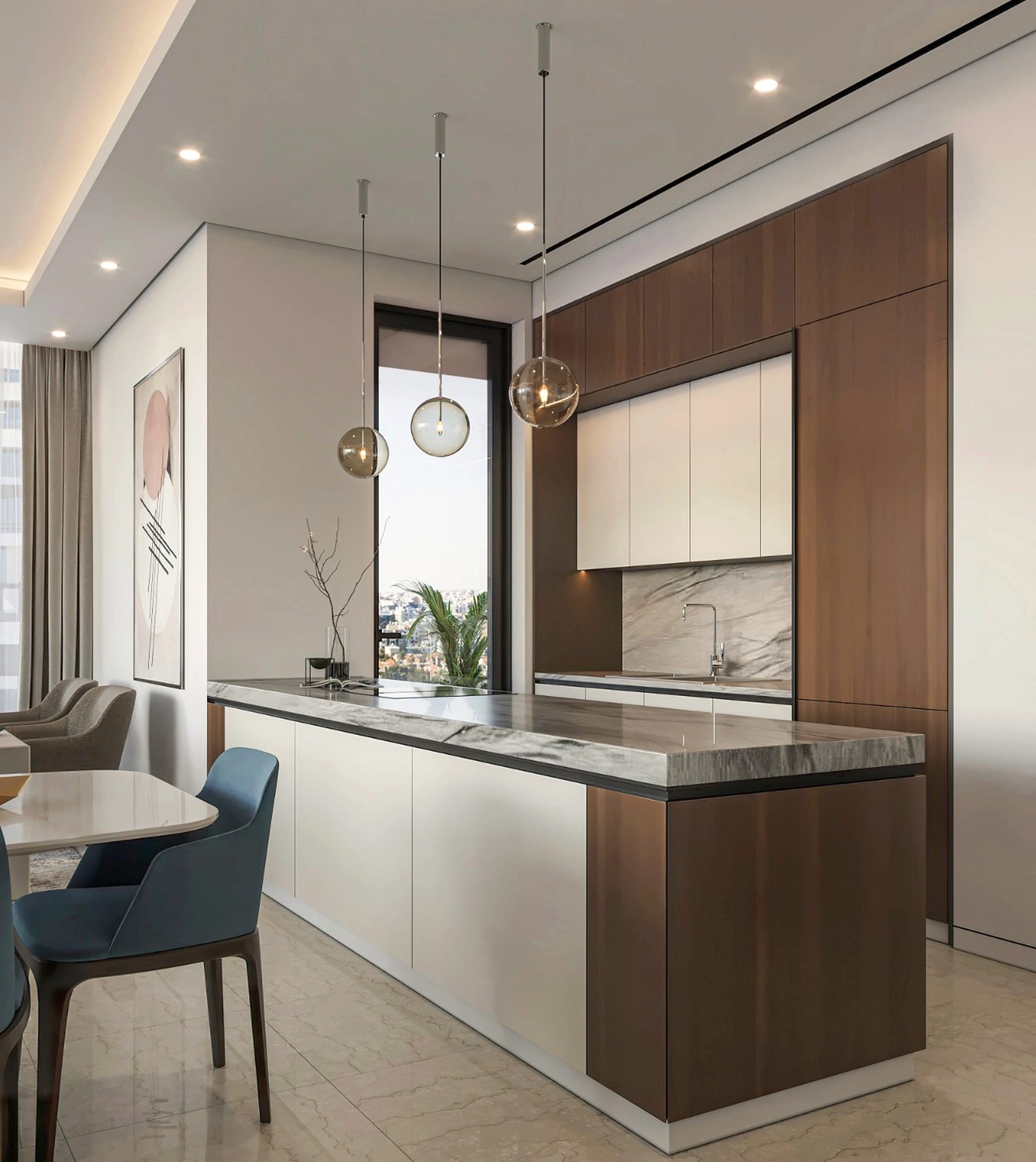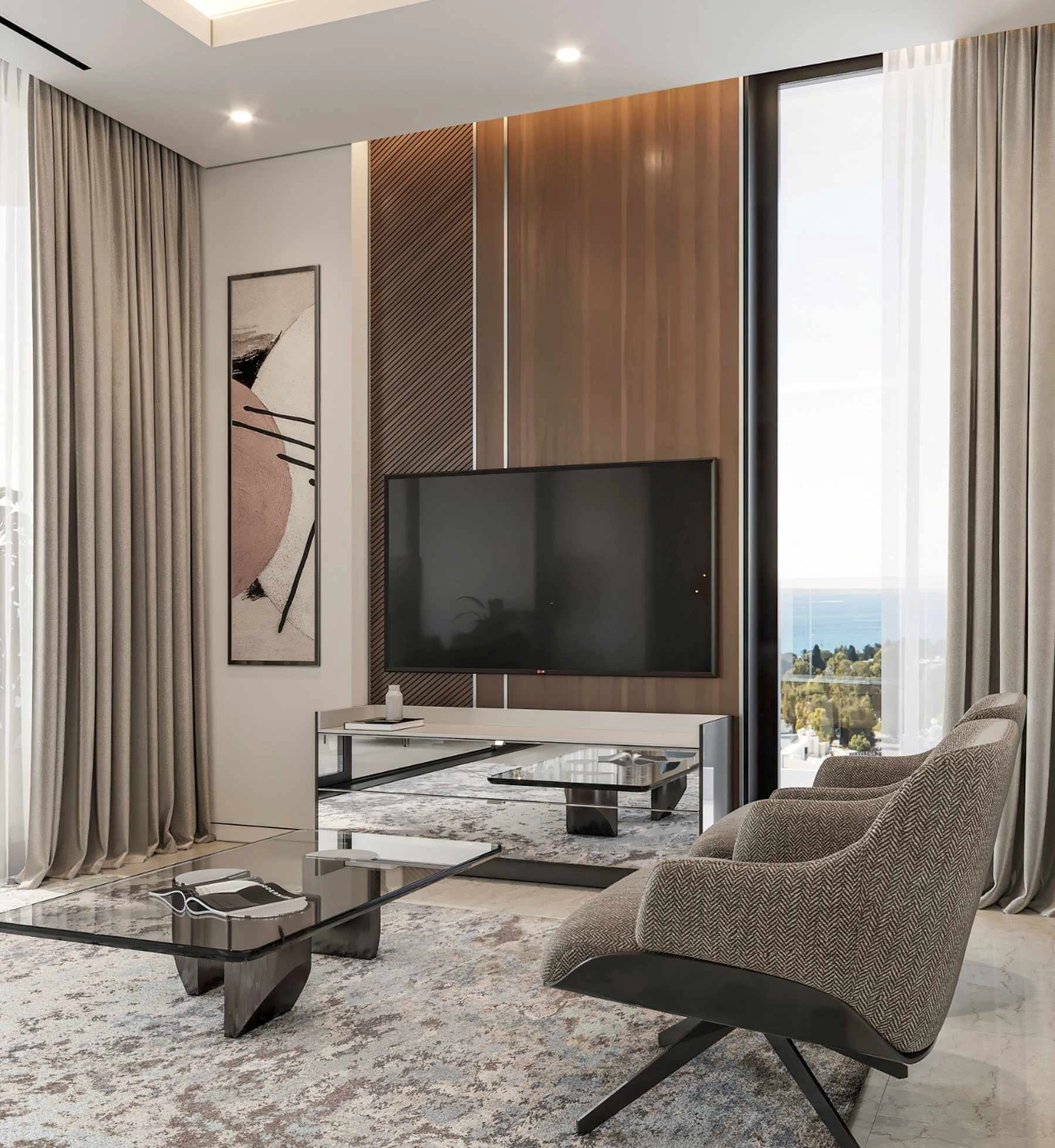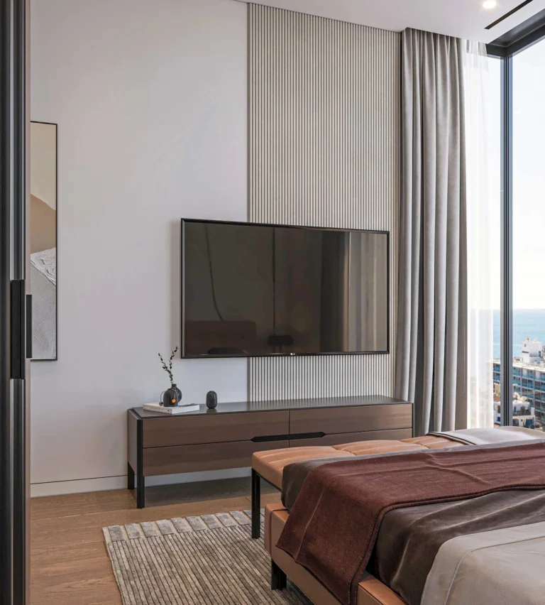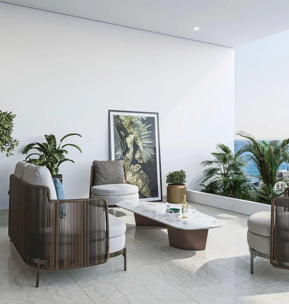 Designed for comfort and elegance, each residence features open-plan living areas flowing into stylish kitchens, spacious bedrooms, and expansive verandas with stunning sea views. High-end finishes from world-renowned manufacturers enhance the interiors, while smart home automation, multi-zone climate control, underfloor heating, and adaptive lighting provide modern convenience.